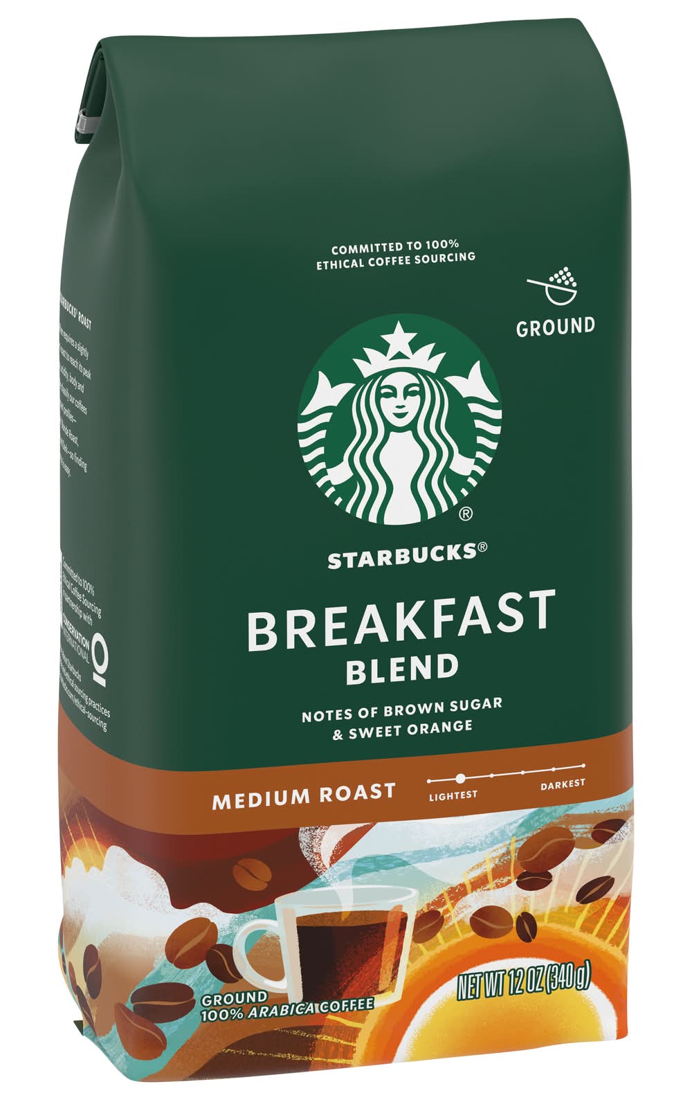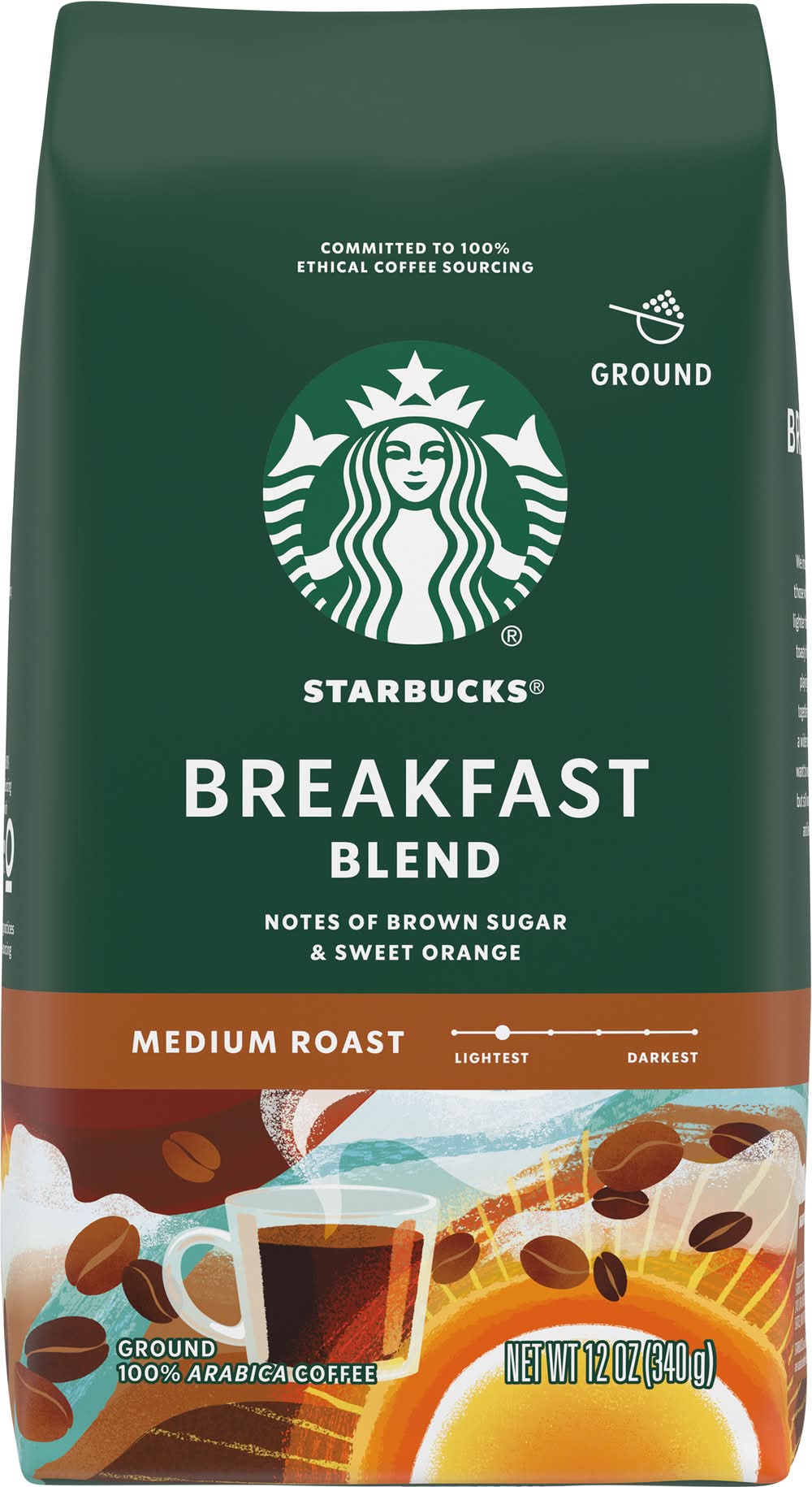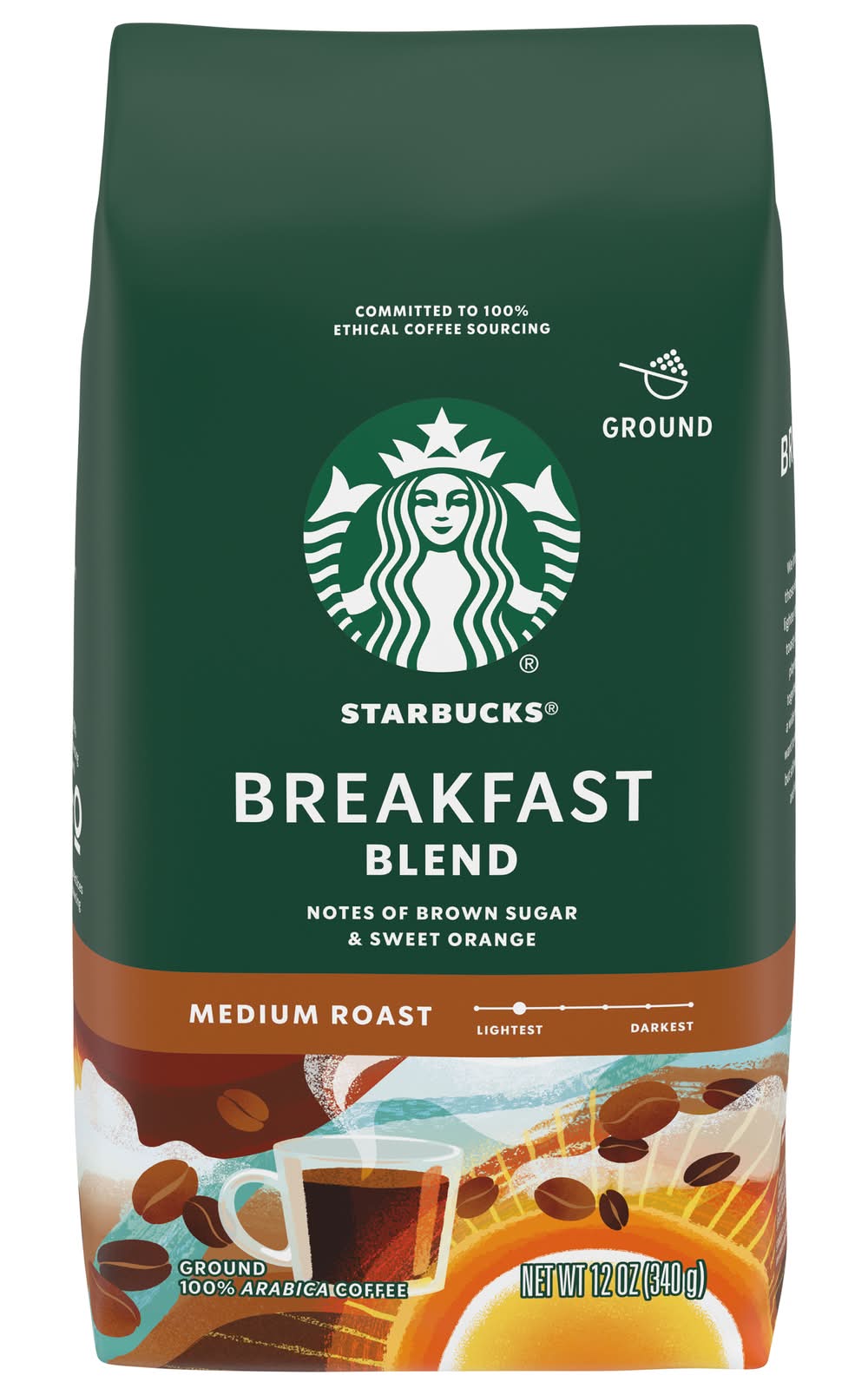 Starbucks Medium Roast Ground 100% Arabica Breakfast Blend Coffee, Brown Sugar & Sweet Orange (12 oz)