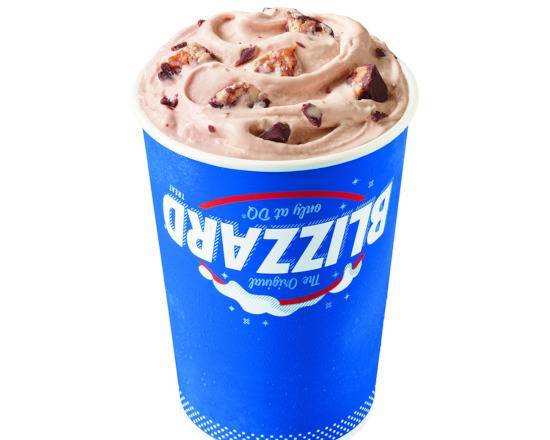 Snickers® pieces and chocolatey topping blended with cream dq® vanilla soft serve blended to blizzard® perfection.