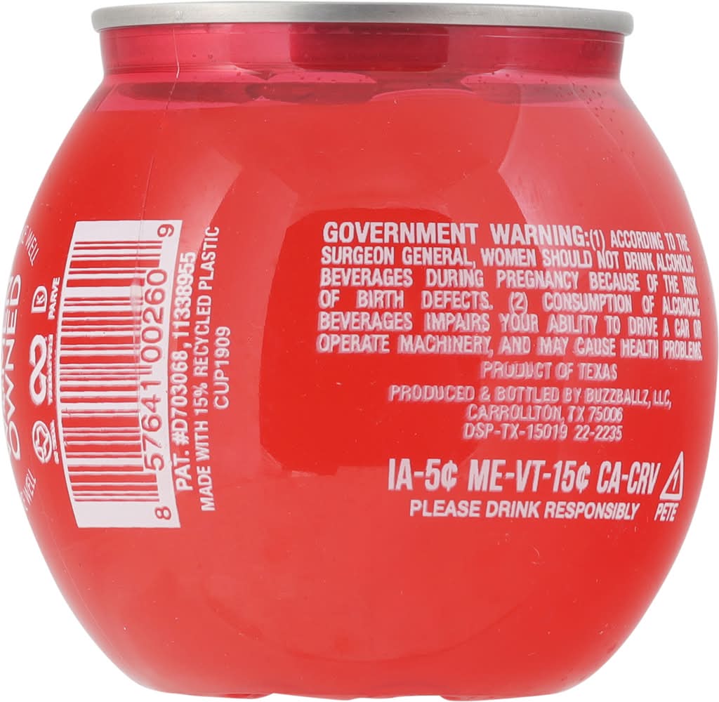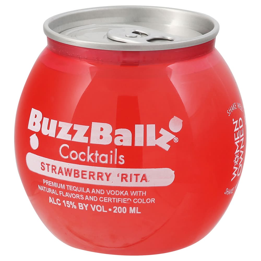 • Flavor: Strawberry 'rita • Alcohol by volume: 15% • Buzzballz, LLC, Carrollton, TX 75006 • Packaging: Reusable