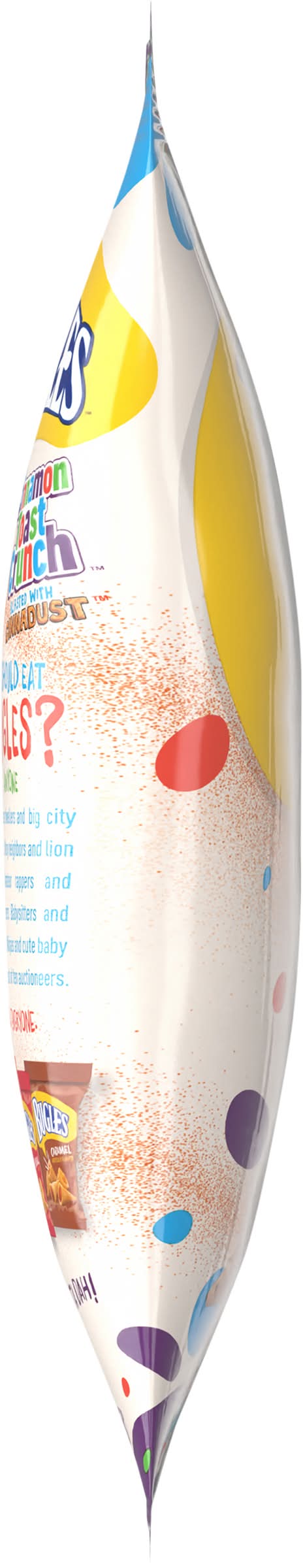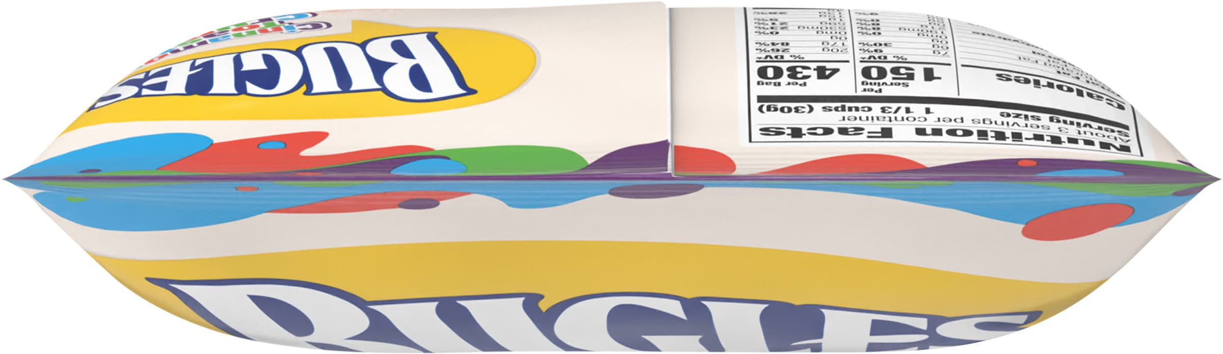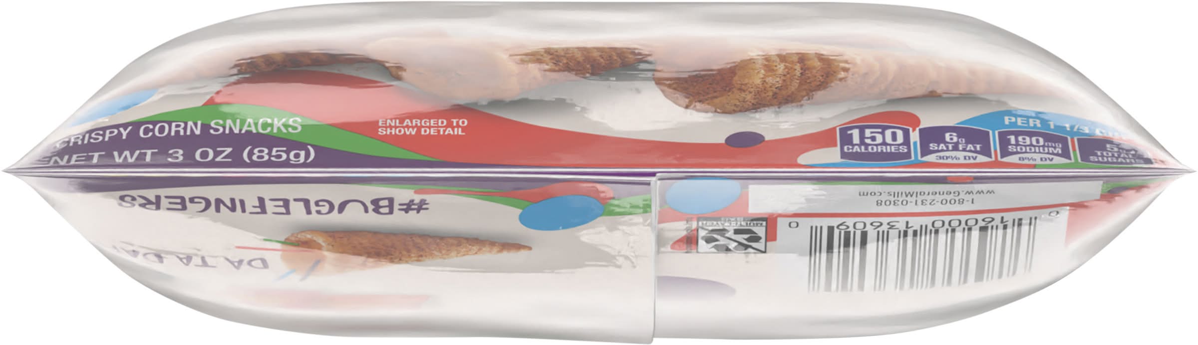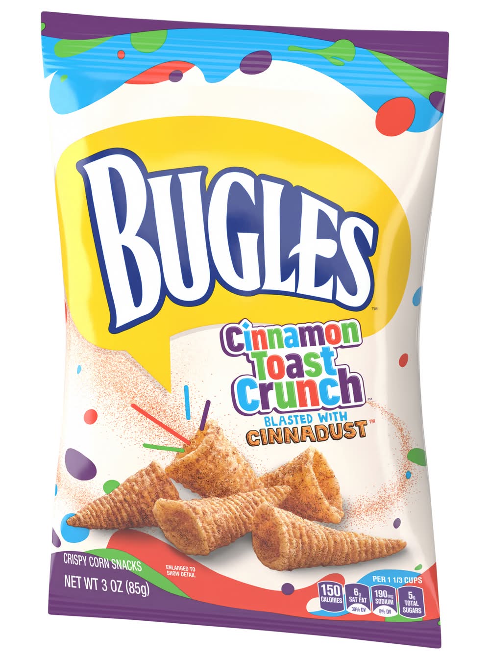 Sound the trumpets. Er ... Bugles. We took everything you love about Cinnamon Toast Crunch cereal and created a sweet Bugles flavor you can share with friends and family. Every cone-shaped piece is blasted with the epic cinnamon and sugar combination we call Cinnadust. Crunchy and irresistibly delicious, it's perfect for snacktime, or anytime. If you're looking for a quick and easy snack idea, it doesn't get more awesome than this. Enjoy by the bowlful, handful or forkful (hey, we don't judge). Just reach into the bag, pop them into your mouth and enjoy. Grab a fistful as you're headed out the door, pack a snack for when you're on the go, enjoy it as a bedtime snack, or have a bag ready for a midnight snack (or when your host your kids' next sleepover). Bugles Crispy Corn Snacks makes great, delicious fun for both kids and kids at heart. Contains one three oz snack bag. Flavor: Cinnamon toast crunch