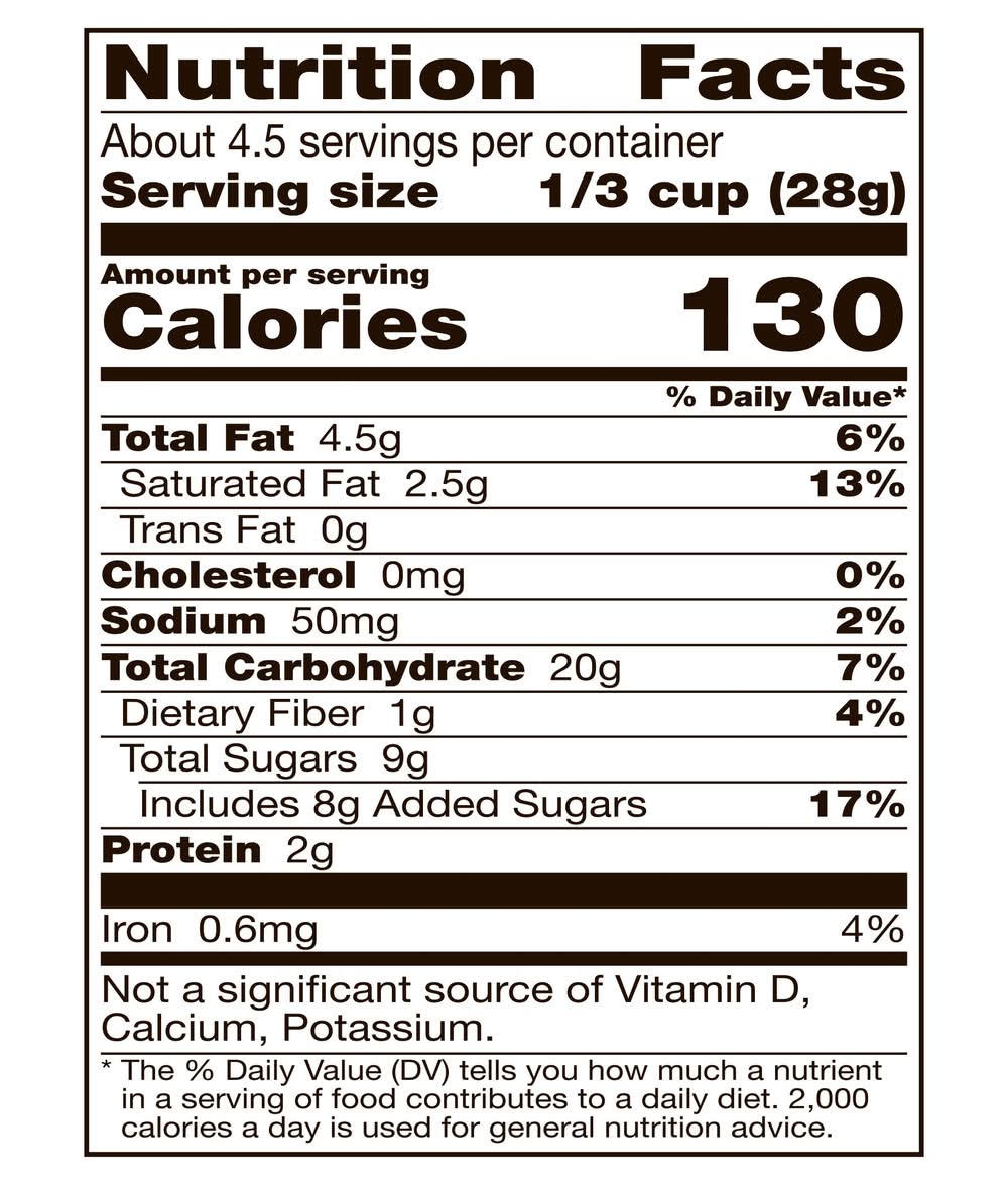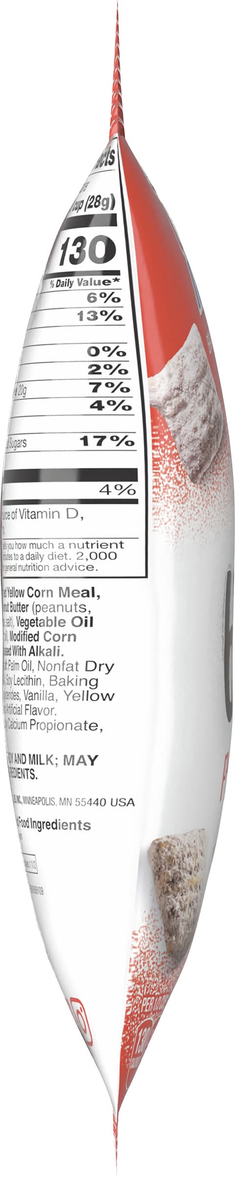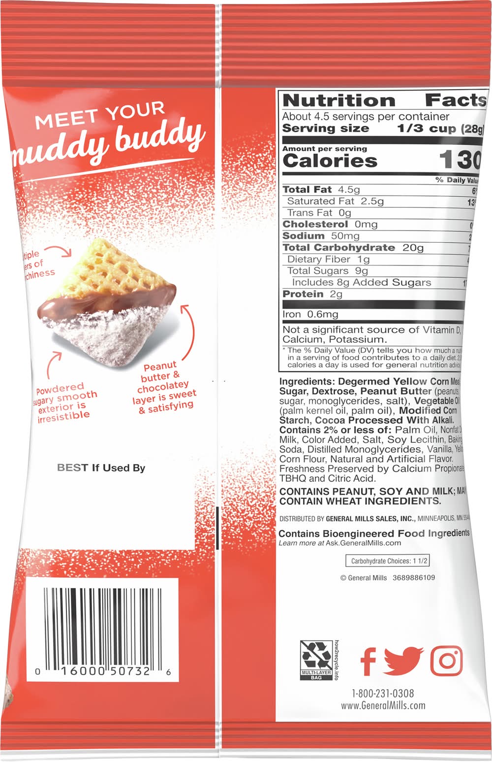 offers a delightful combination of flavors and textures. Coated in a sweet and satisfying blend of each piece boasts multiple layers of crunchiness. A powdered sugary coating provides a smooth finish to this snack. Each serving size of 1/3 cup contains 130 calories, 2.5 grams of saturated fat, 50 milligrams of sodium, and 9 grams of total sugars. It is important to note that the product contains bioengineered food ingredients. Flavor: Peanut butter-chocolate