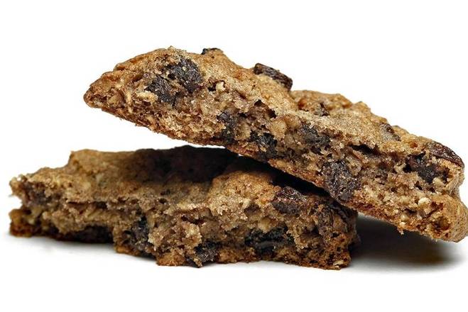 **NO SWAP OUTS OR SUBSTITUTIONS** 3 oatmeal raisin cookies in a white bag.