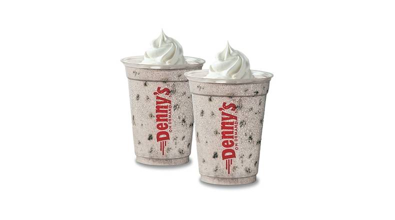 Two OREO® milk shakes made with premium ice cream and topped with whipped cream.