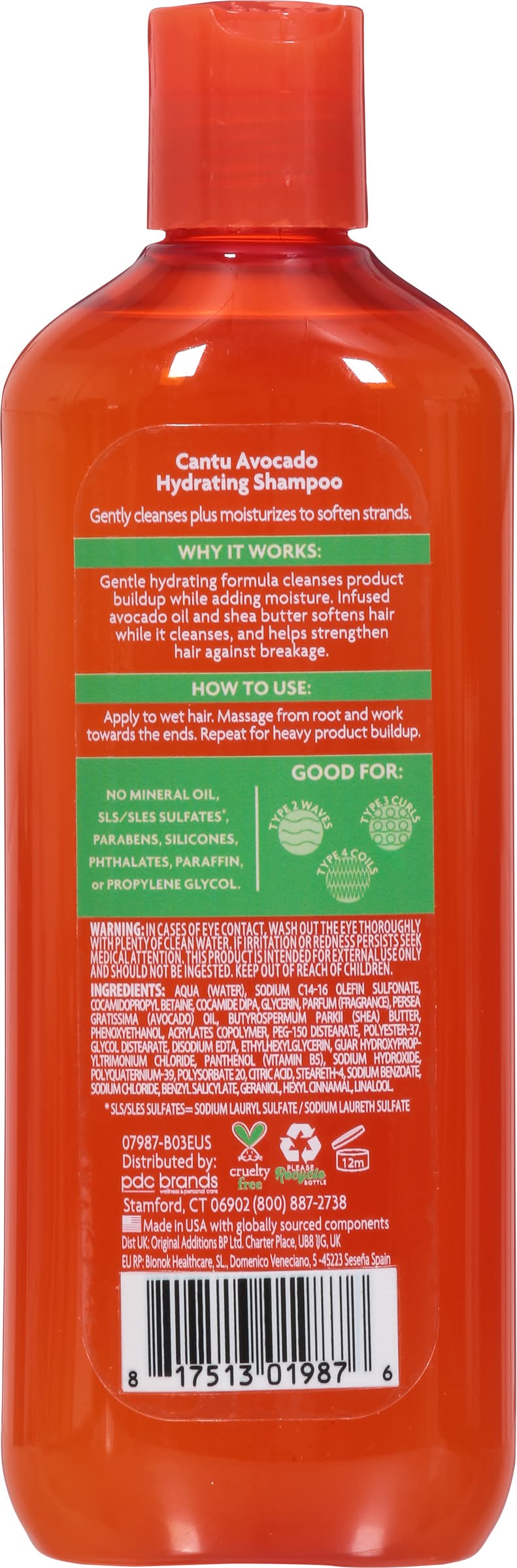 Shampoo, Hydrating, Avocado • Brand: Cantu • PDC Brands, Stamford, CT, 06902, Ph: 800-887-2738 • Packaging: Reusable