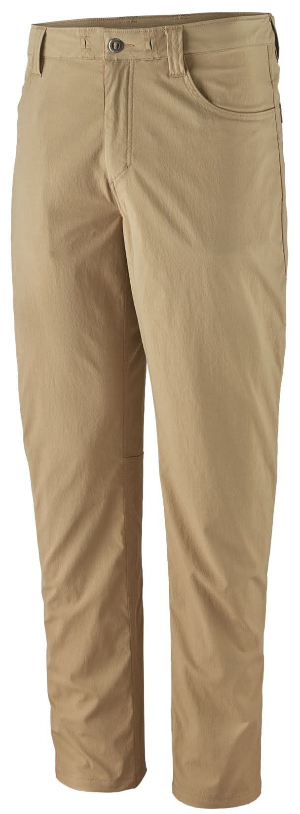 Fit & Design: Regular fit Sits on the waist with a regular rise; not too loose and not too tight in the seat and thighs; cut straight from knee to ankle; best for lean-to-medium builds Curved waistband contours to the natural shape of the hips and provides a close fit to keep pants in place during movement; metal-button closure with zip fly Two handwarmer pockets, two rear pockets, one right coin pocket and one right-thigh zippered pocket Gusseted crotch allows for a full range of motion Inseam is 32"; also available in a 30" inseam Additional Details: Made of stretch-woven 95% nylon (65% recycled)/5% spandex double weave with a DWR (durable water repellent) finish and 40+ UPF sun protection Made in Vietnam. Weight: 284 g (10 oz) 4.2-oz 95% nylon (65% recycled)/5% spandex double weave with a DWR (durable water repellent) finish and 40+ UPF sun protection . Casual • Color: Classic tan • Size: 34 • male