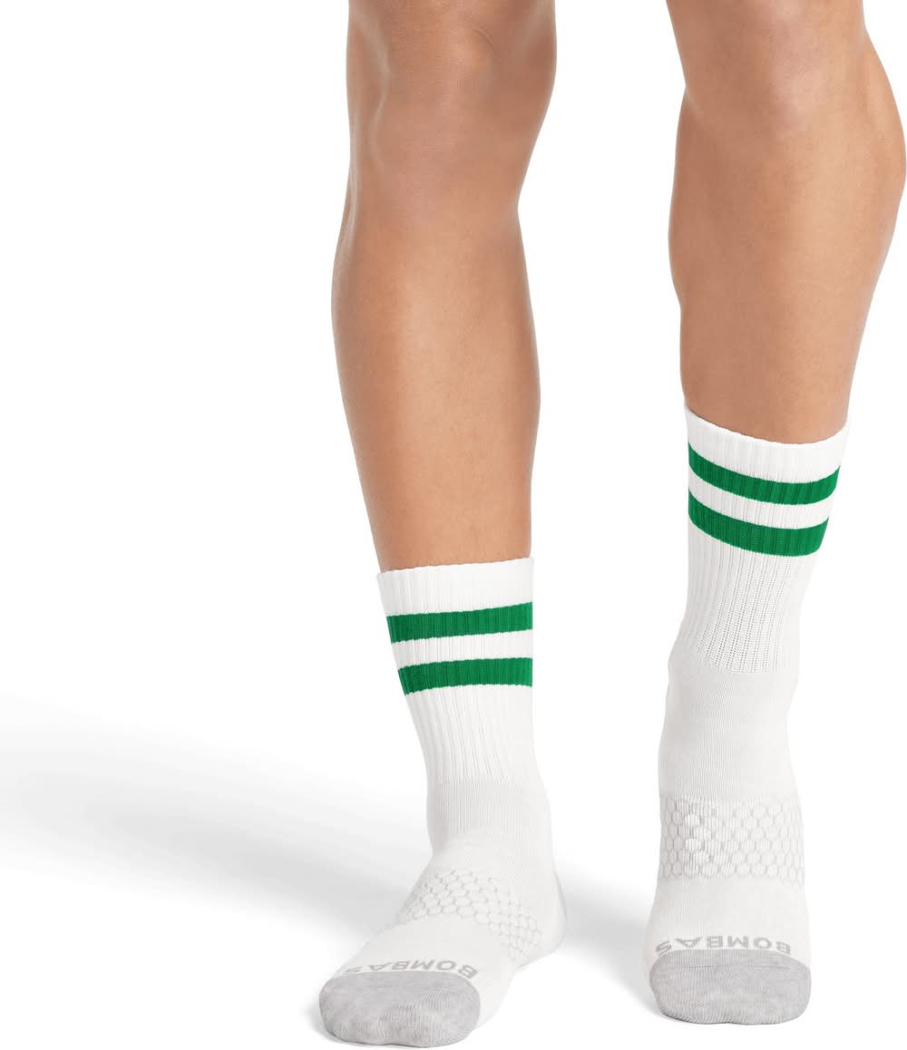 Bombas Solid Vintage Stripes Half Calf Socks (Deep Jungle, L)