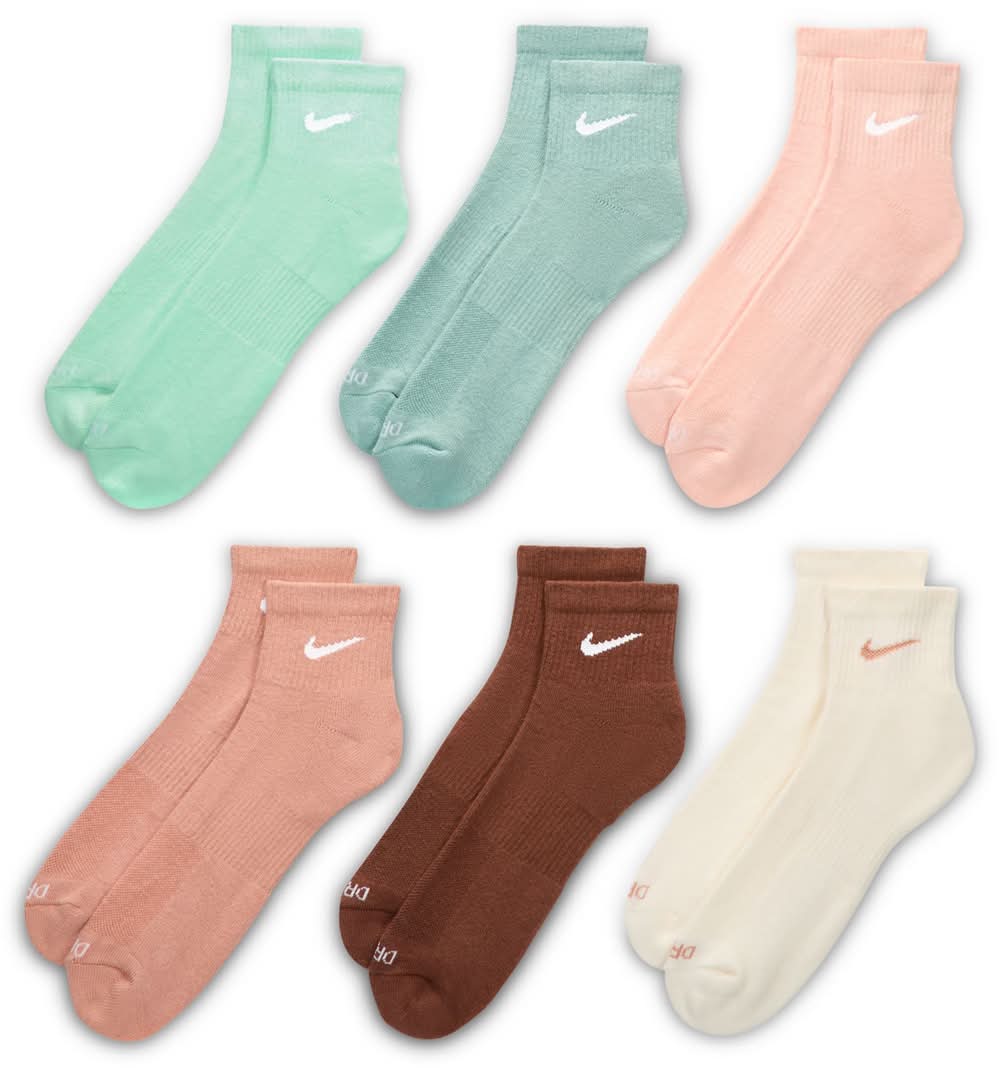 Nike Dri-FIT Everyday Plus Cushioned Training Ankle Socks - 6 Pack (Mint Foam/Cannon, L)