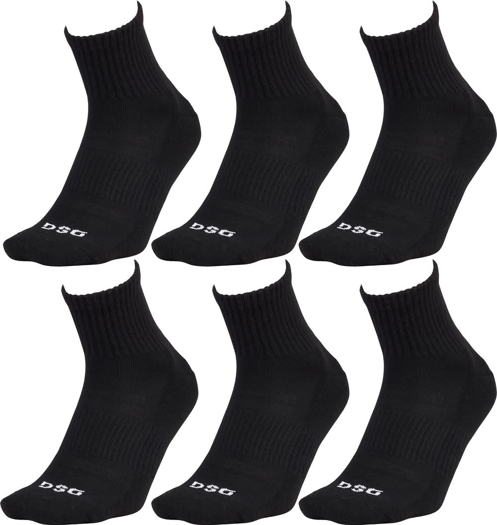 Fit & Design: 6 pairs of socks Quarter crew height delivers a comfortable fit Want to learn more about the DSG brand? Check out our brand shop page here. . Casual • Pack size: 6 • Color: Black • Size: M