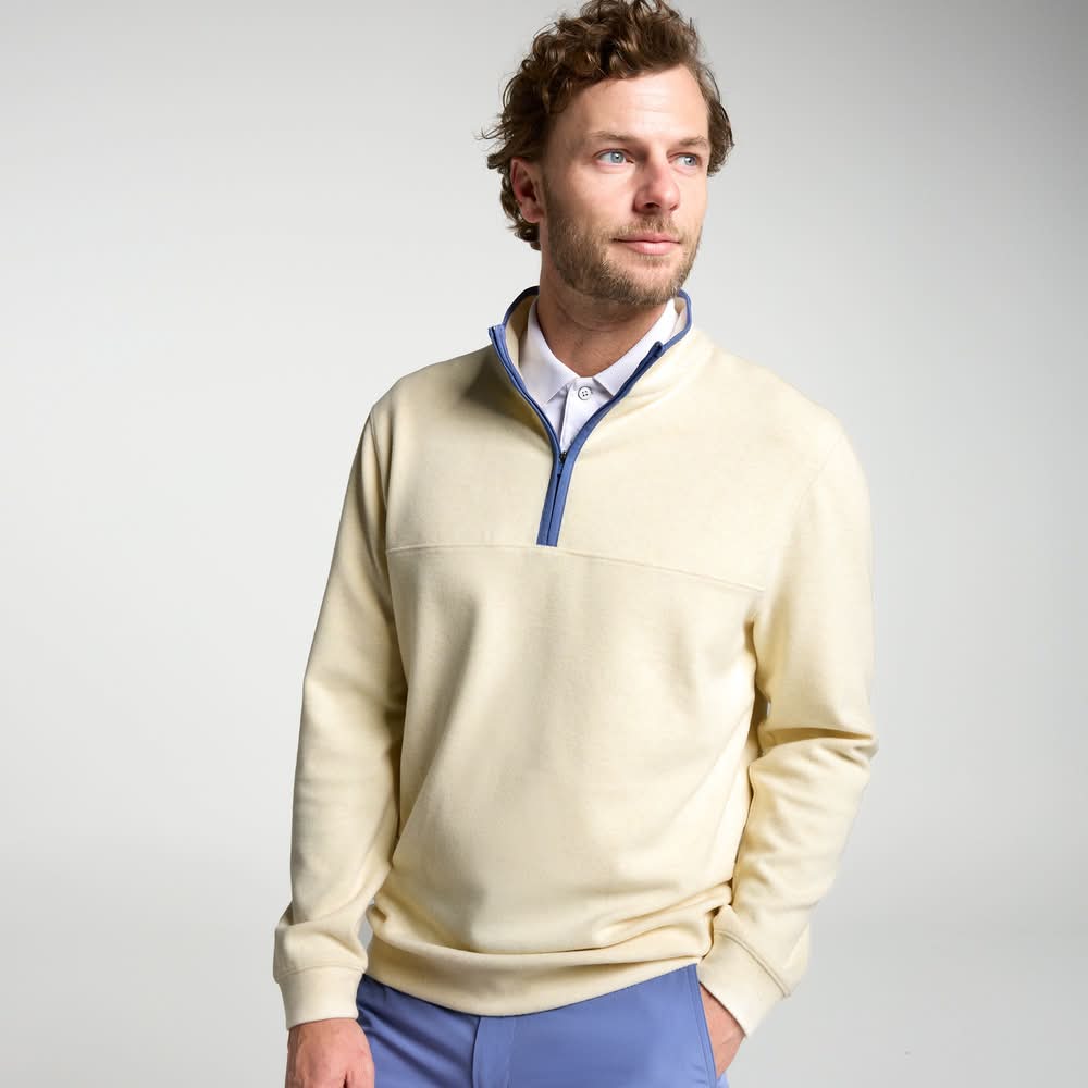 Gear up for your best round yet with a pullover built for cooling comfort. The textured fabric feels soft and comfortable against your skin, perfect for all-day wear on and off the course. UPF 50+ protection helps block harmful UV rays so you can stay focused on your game, no matter how long the round lasts. Fit & Design: Relaxed fit men’s sweatshirtUse the 1/4 zip collar to cool down when things heat up The textured fabric feels comfortable against the skin Technology: UPF 50+ ultraviolet protection against the sun’s damaging rays, rated according to ASTM D6603 . Golf • Color: Almond oil • Size: M