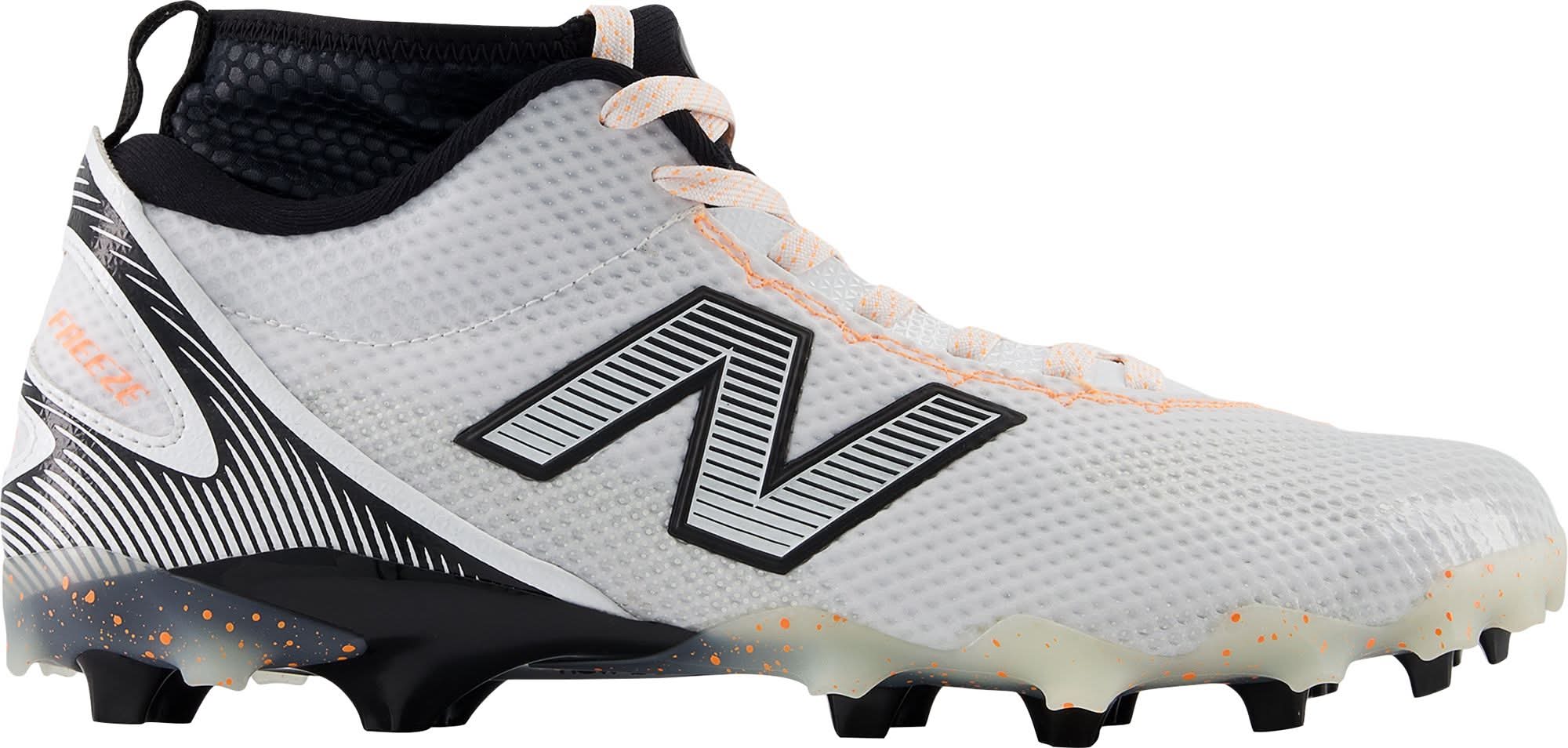 New Balance FreezeLX V5 Mid Lacrosse Cleats (White/Mango Orange, M8.0/W9.5)