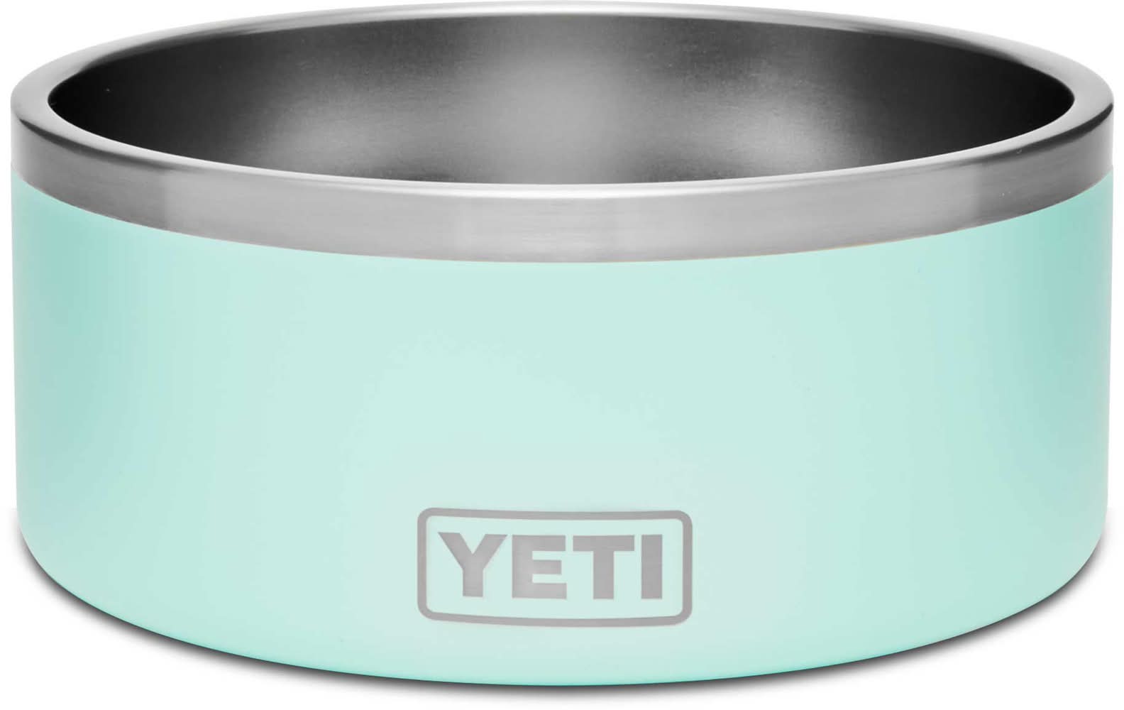 The YETI BOOMER Dog Bowl is designed to be as dependable and adventurous as your best friend. SPECS:Outside Dimensions: 8 in. W x 3.5 in. HEmpty Weight: 1.9 lbs.Capacity: 8 cups/64 oz. TECHNOLOGY:DuraCoat™ Color Technology is built to last with no chipping, fading, or cracking18/8 Kitchen-grade stainless steel construction for extreme durabilityBearFoot™ Non-Slip Ring on the bottom prevents the bowl from slidingFEATURES:Puncture-resistant and rust-resistantFood safeDishwasher safeBPA-Free. Hydration Color: Seafoam