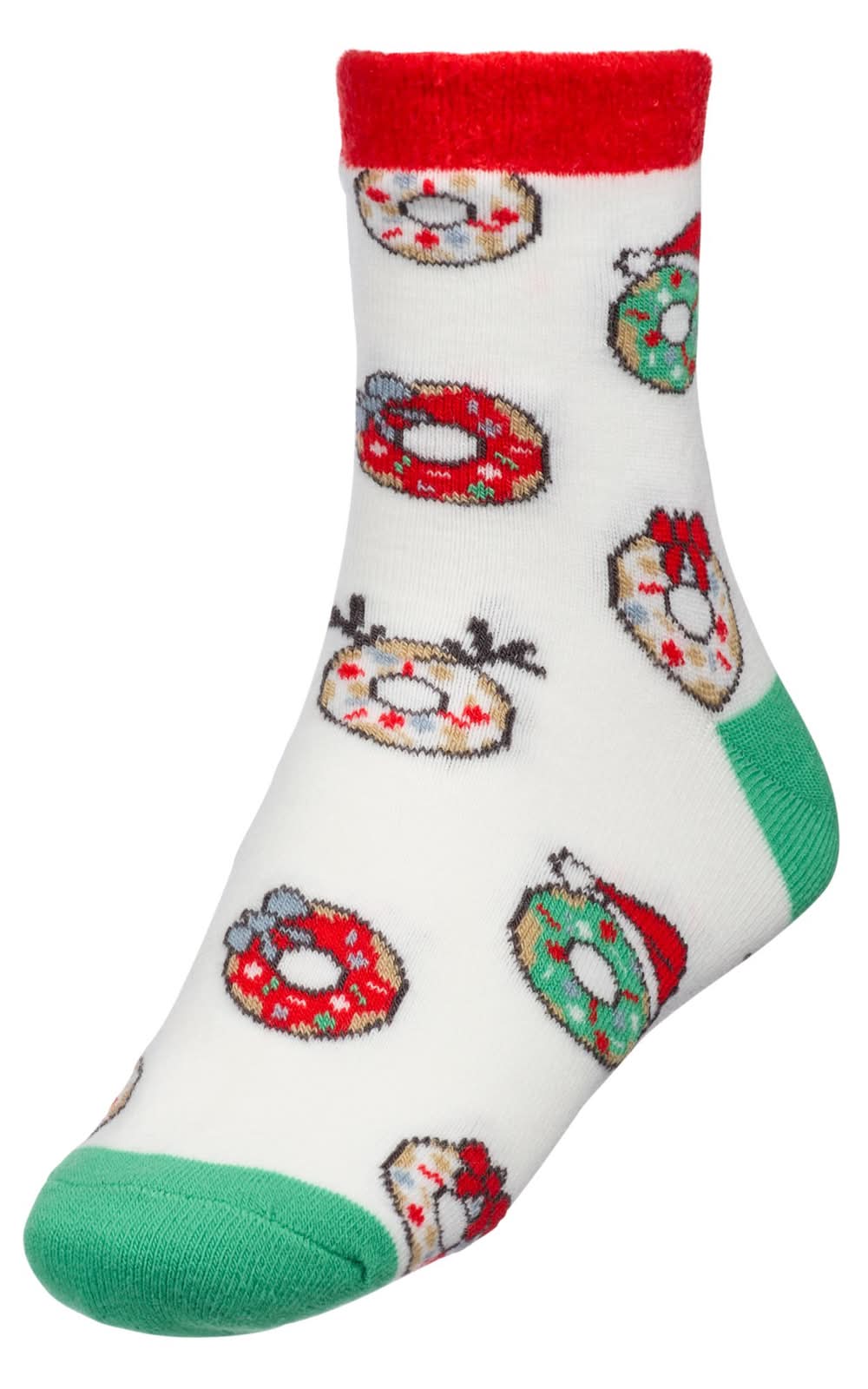 Fit & Design: The Cozy Sock Double layer Aloe infused S: Youth 10K-4 M: Women's 5-10, Men's 4-8 L: Men's: 8-12.5, Women's 10-13 Additional Details: . Winter Recreation. Kids (8-20) • Color: Festive donuts • Size: L