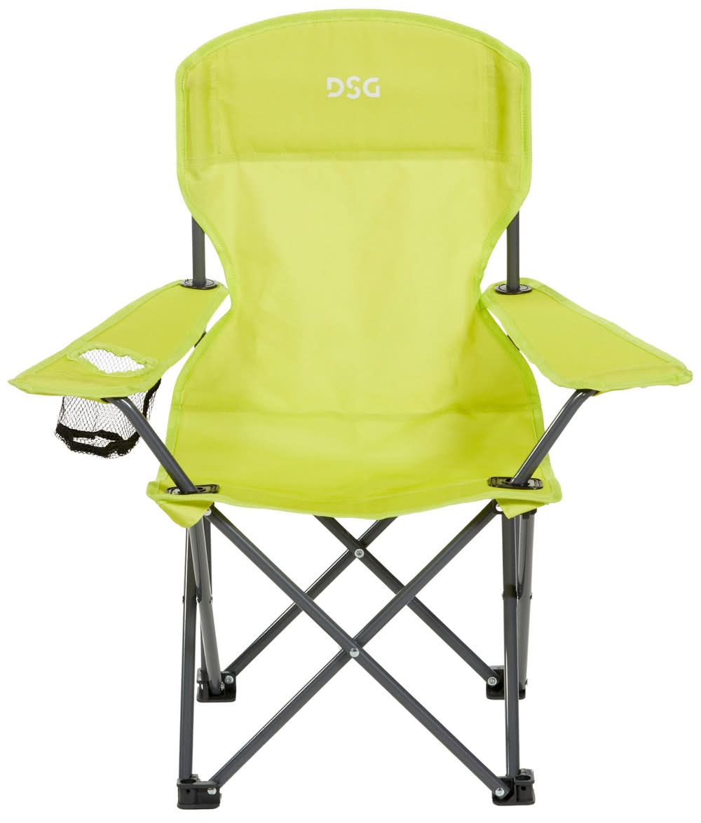The DSG Junior Chair is the perfect accessory for lounging around the campfire or tailgating with friends. This lightweight, durable chair features strong steel legs and a 600D polyester seat. The convenient cup holder and handy storage bag make the Junior Chair ideal for any outdoor event.FEATURES: Perfect for camping, backyard use or sporting events Handy storage bag with carrying strap included Durable steel legs and 600D polyester seat Conveniently placed mesh cup holder Dimensions: 23.23"W x 14.17"D x 26.77"H Weight Capacity: 150 lbs. . Casual Color: Lime green