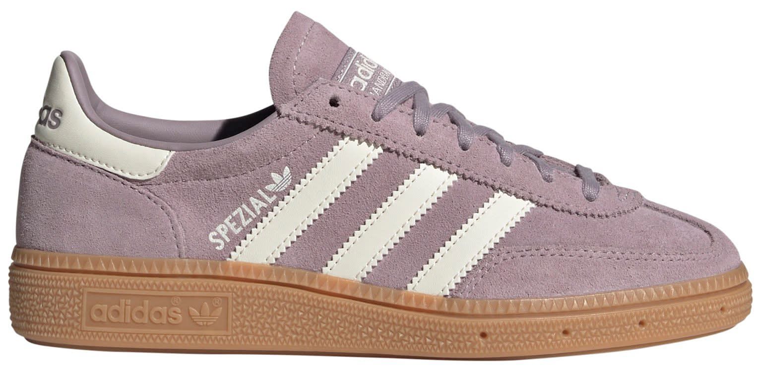 Whether you're heading to school or hanging out with friends, lace up a pair of adidas Originals Handball Spezial shoes and add retro-inspired style to your step. First released in 1979, these juniors' shoes blend authentic '70s design with modern comfort. A suede upper in vibrant shades gives these kicks a lively look while the rubber cupsole provides grip so you can confidently go wherever the day takes you. Design:Leather and synthetic upper Lace closure Quarter sign off with Trefoil & SPEZIAL wording Woven label on tongue with gold foil branding Durability & Traction: Rubber outsole offers traction . Casual. Kids (8-20) • Color: Cream/white • Size: 5.5