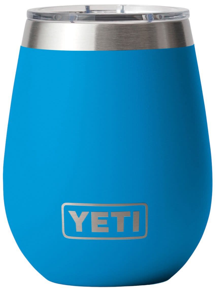 Upgrade your wine glass to the YETI 10 oz. Rambler® Wine Tumbler with MagSlider Lid. You won’t have to worry about glass breaking and it’s great for tailgates, afternoons around the pool, or a picnic in the woods. The double-wall vacuum insulation and 18/8 kitchen-grade stainless steel keeps your red or white wine at the ideal temperature. Enjoy your favorite wine outdoors with the YETI Wine Tumbler.TECHNOLOGY:DuraCoat™ Color Technology is built to last with no chipping, fading or cracking18/8 Kitchen-grade stainless steel construction for extreme durabilityDouble-wall vacuum insulation keeps your beverage coldNo Sweat™ Design keeps your hands and cup dryMagSlider™ Lid uses magnets for easy opening and closing, and keeps your beverage cold/warm longer FEATURES:Puncture-resistant and rust-resistant for lasting useRed wine won’t stain the tumblerDishwasher safe for easy cleaningMagSlider™ magnets pop off for easy cleaningSPECS:Capacity: 10 oz.Height: 4.5”Base width: 3.5”Weight: 8.12 oz.. Hydration Color: Big wave blue