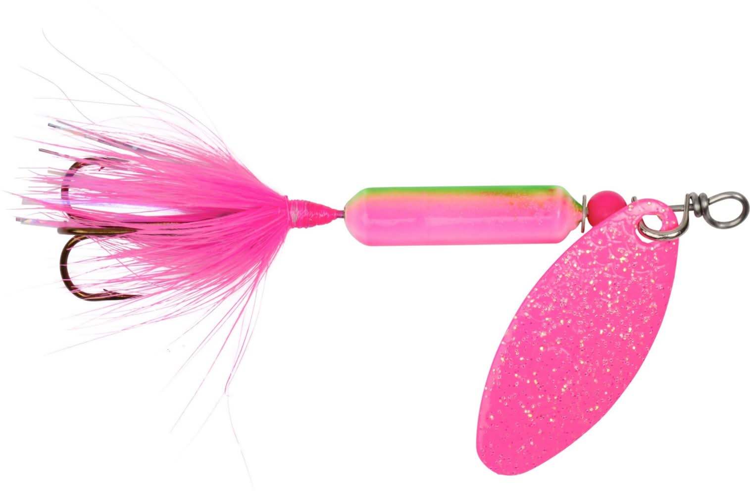 USES:Nearly any gamefishDESIGN AND DETAILS:Reliability as one of the most productive spinners since the 1950’sPulsating hackle tail and unique spinning action entice fish when nothing else doesIn-line weighted body design. Fishing Color: Electric chicken