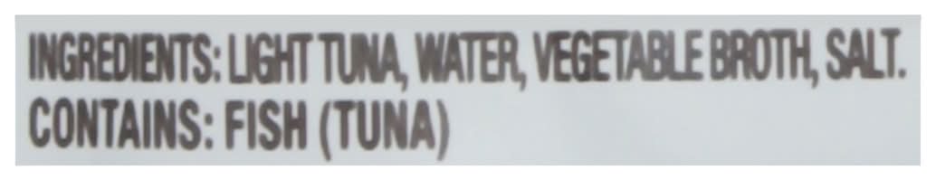 Ingredients: Light Tuna, Water, Vegetable Broth, Salt Contains: Fish, Tuna