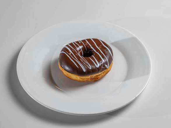 Enjoy the Chocolate Marble Donut with a tasty chocolate glaze and beautiful white chocolate icing lines.