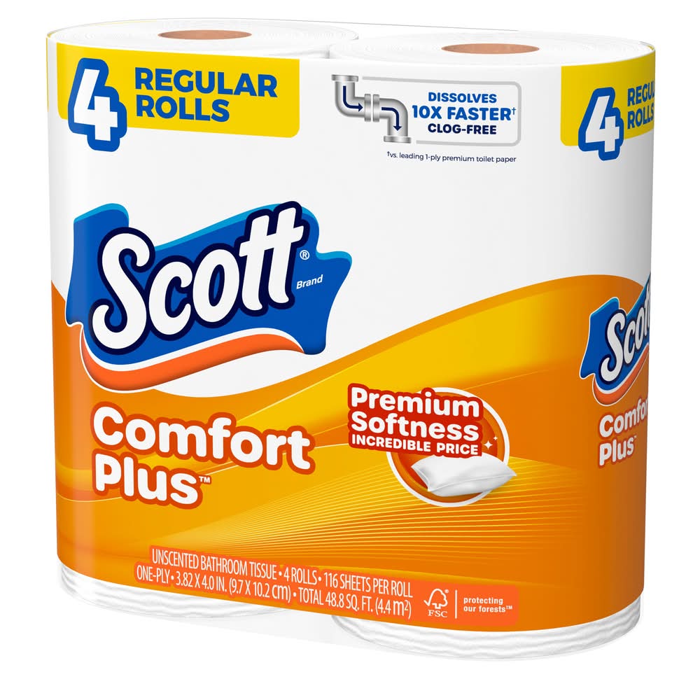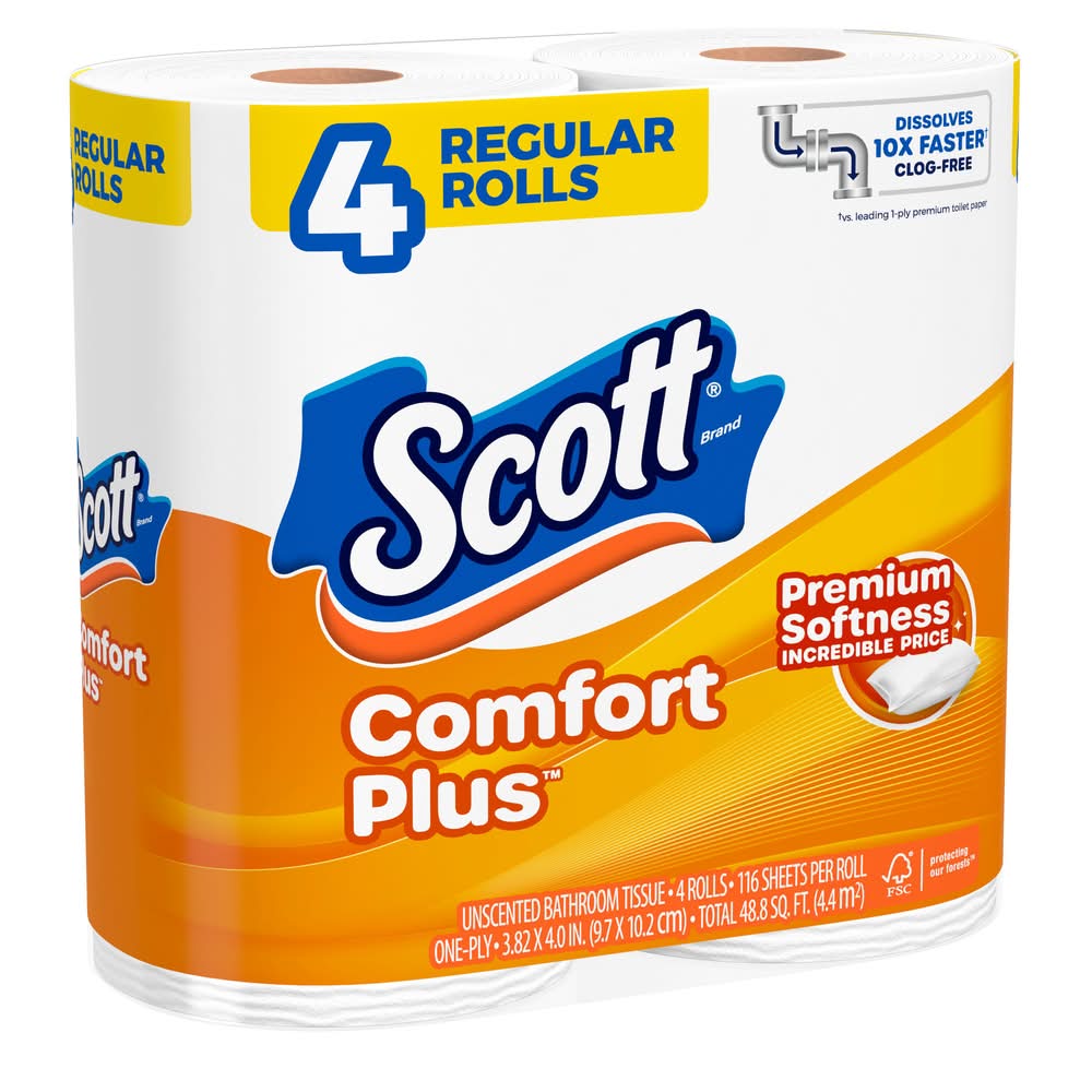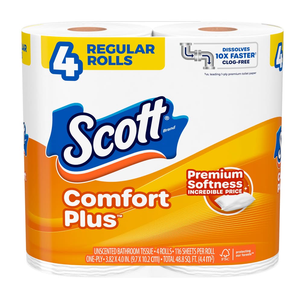 Scott Comfort Plus Premium Softness Bathroom Tissue Rolls, 3.82x4 in (4 ct)