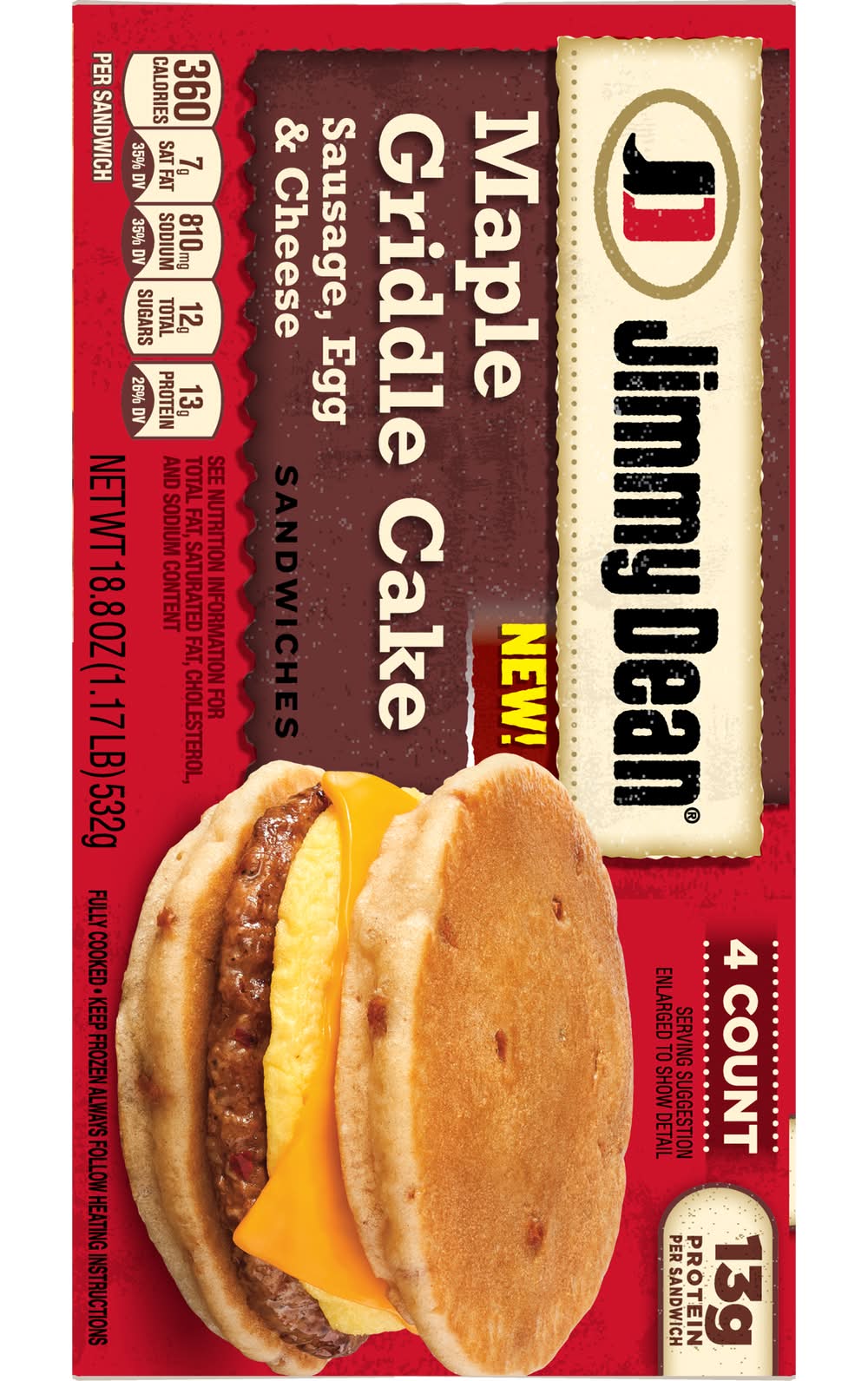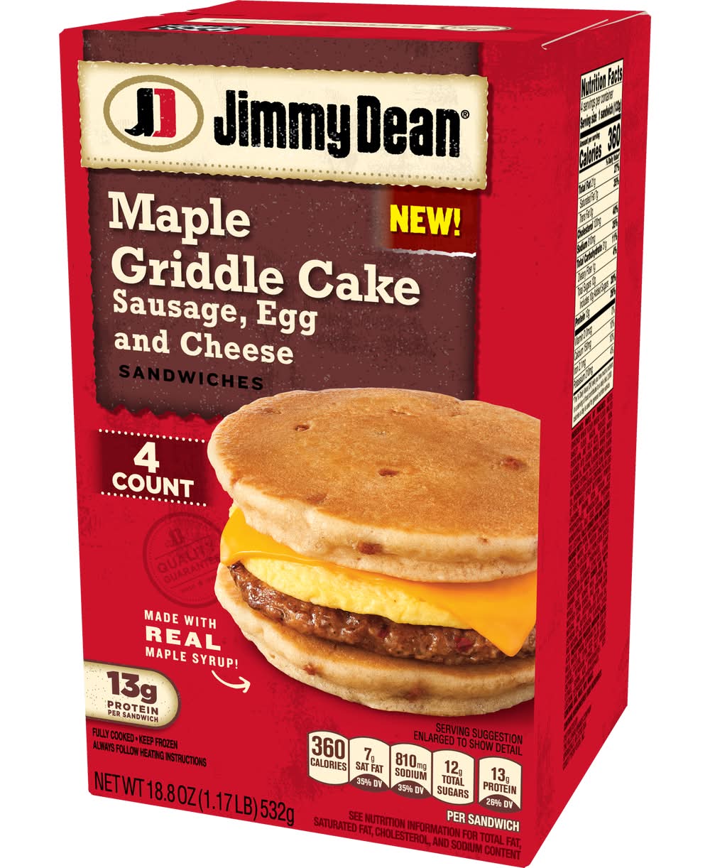 Maple Griddle Cake Sausage, Egg and Cheese Sandwiches • Flavor: Egg-cheese • Size: 18.8 OZ • Packaging: Reusable