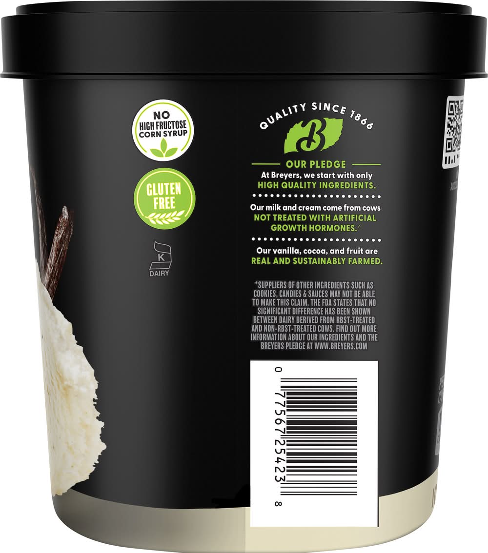 Partnering farmers. pledge we start with only high quality ingredients. our dairy is all our milk and cream come from cows not treated with artificial growth hormones the states that no significant difference has been shown between dairy our colors and flavors come from natural sources. our and fruit are real and sustainably farmed. thick & smooth like it was just churned. real milk & fresh cream. 100% grade a milk and cream. • Flavor: Natural vanilla • Size: 48 OZ