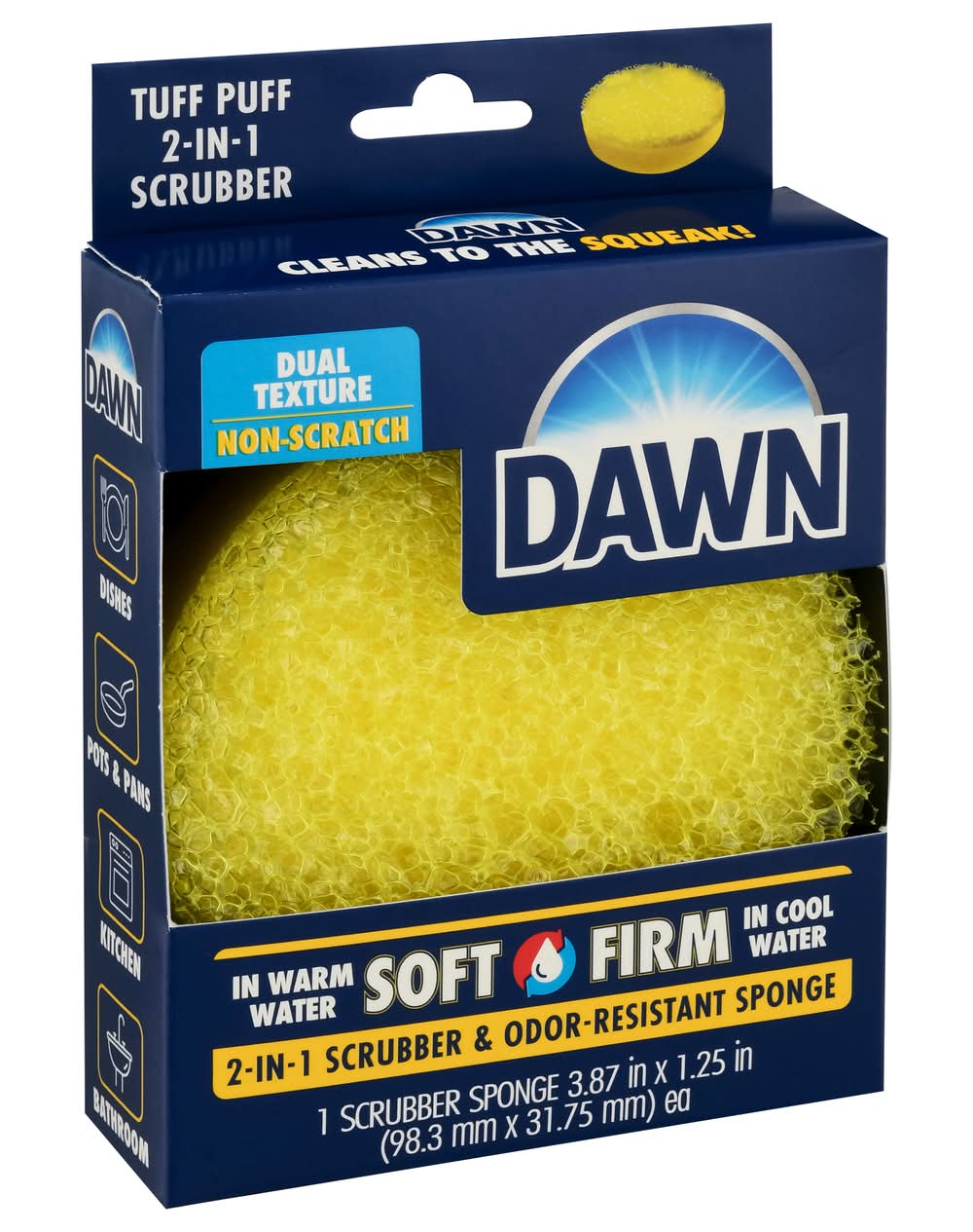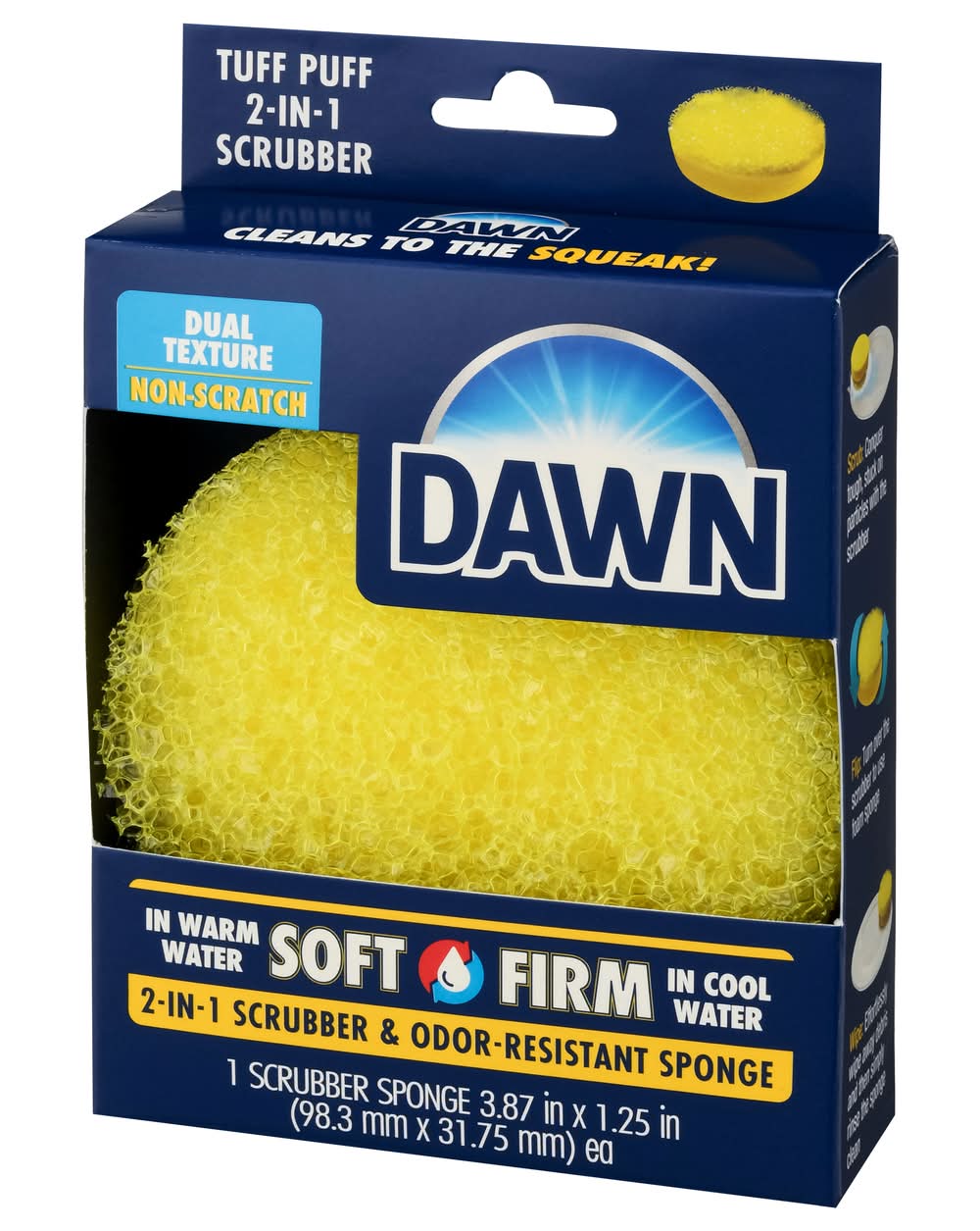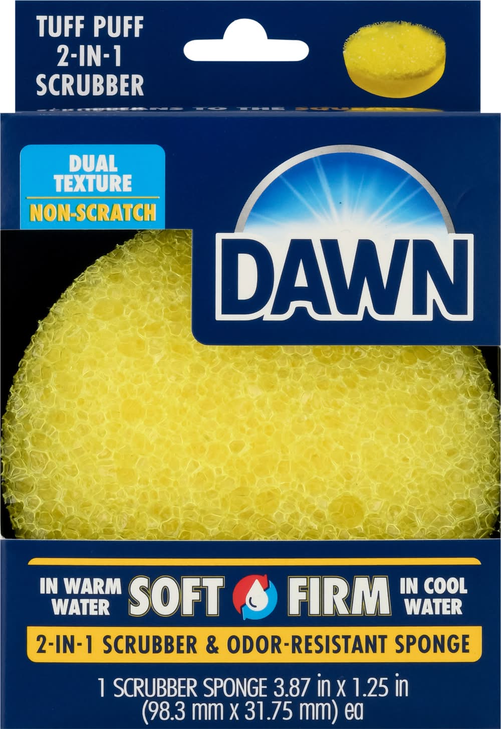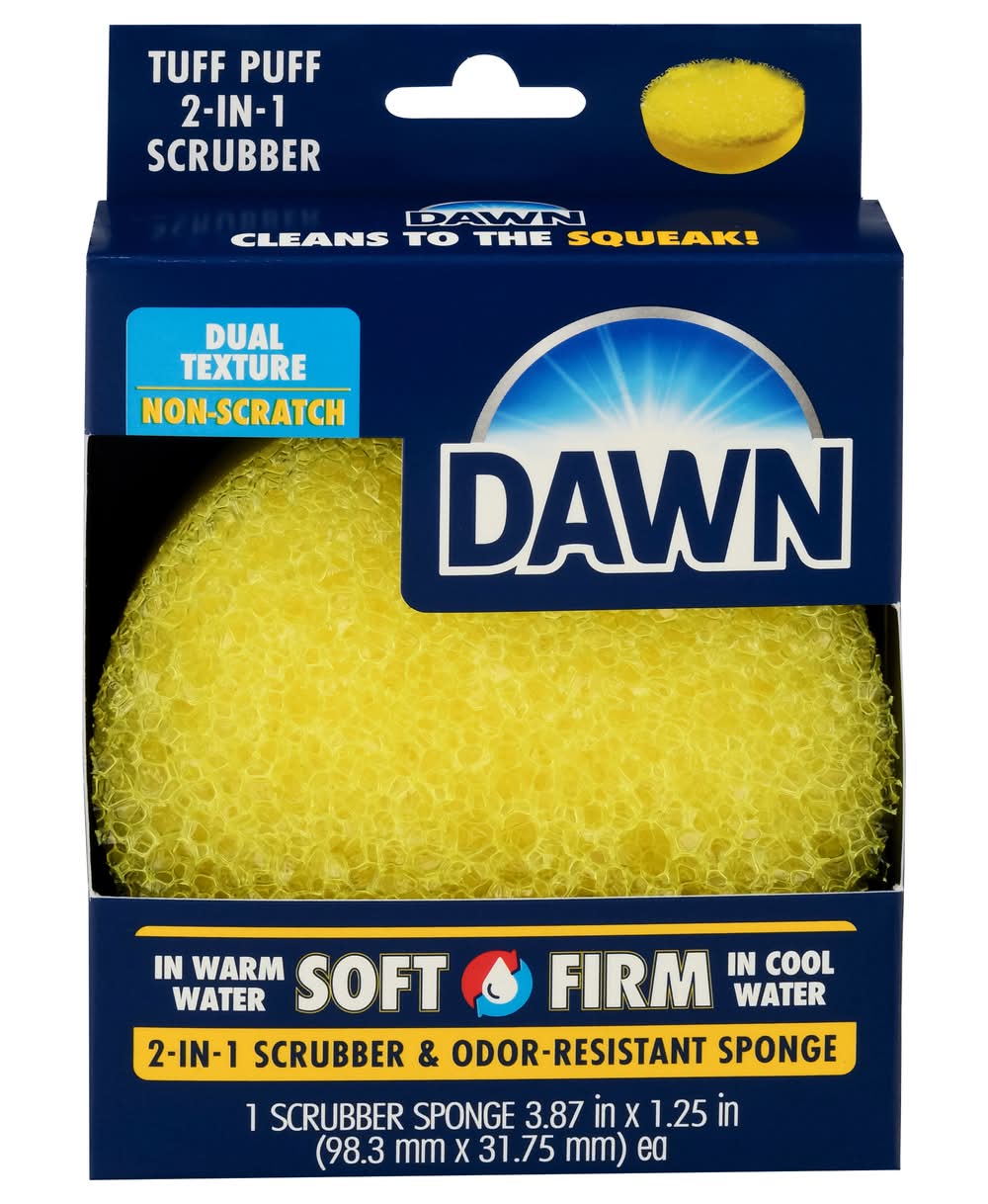 Scrubber Sponge, 2-in-1, Tuff Puff, Odor-Resistant, Dual Texture, Non-Scratch Size: 3.87x3.75x1.25 in