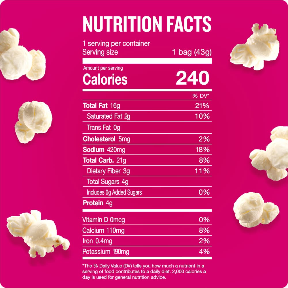 Ingredients: Popcorn, Sunflower Oil, Whey, Cheddar Cheese (Cultured Pasteurized Milk, Salt, Enzymes), Nonfat Milk, Salt, Lactic Acid, Natural Flavor. CONTAINS: MILK. Contains: Milk