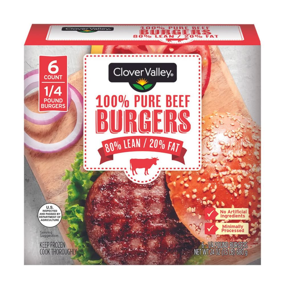 Clover Valley 100% Pure Beef Burgers 6 Ct