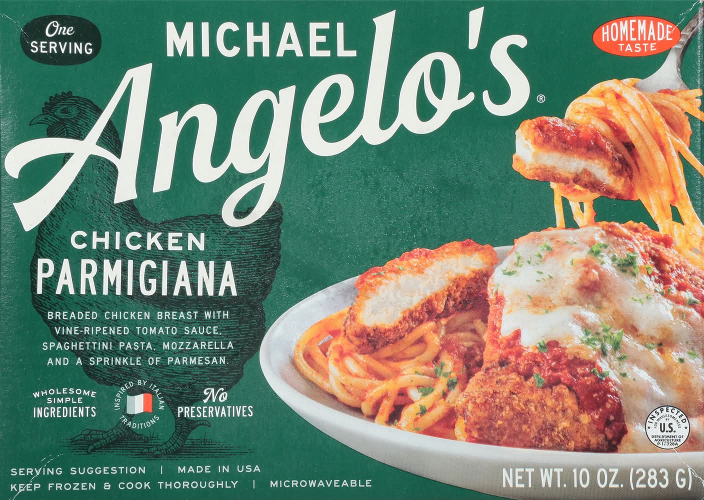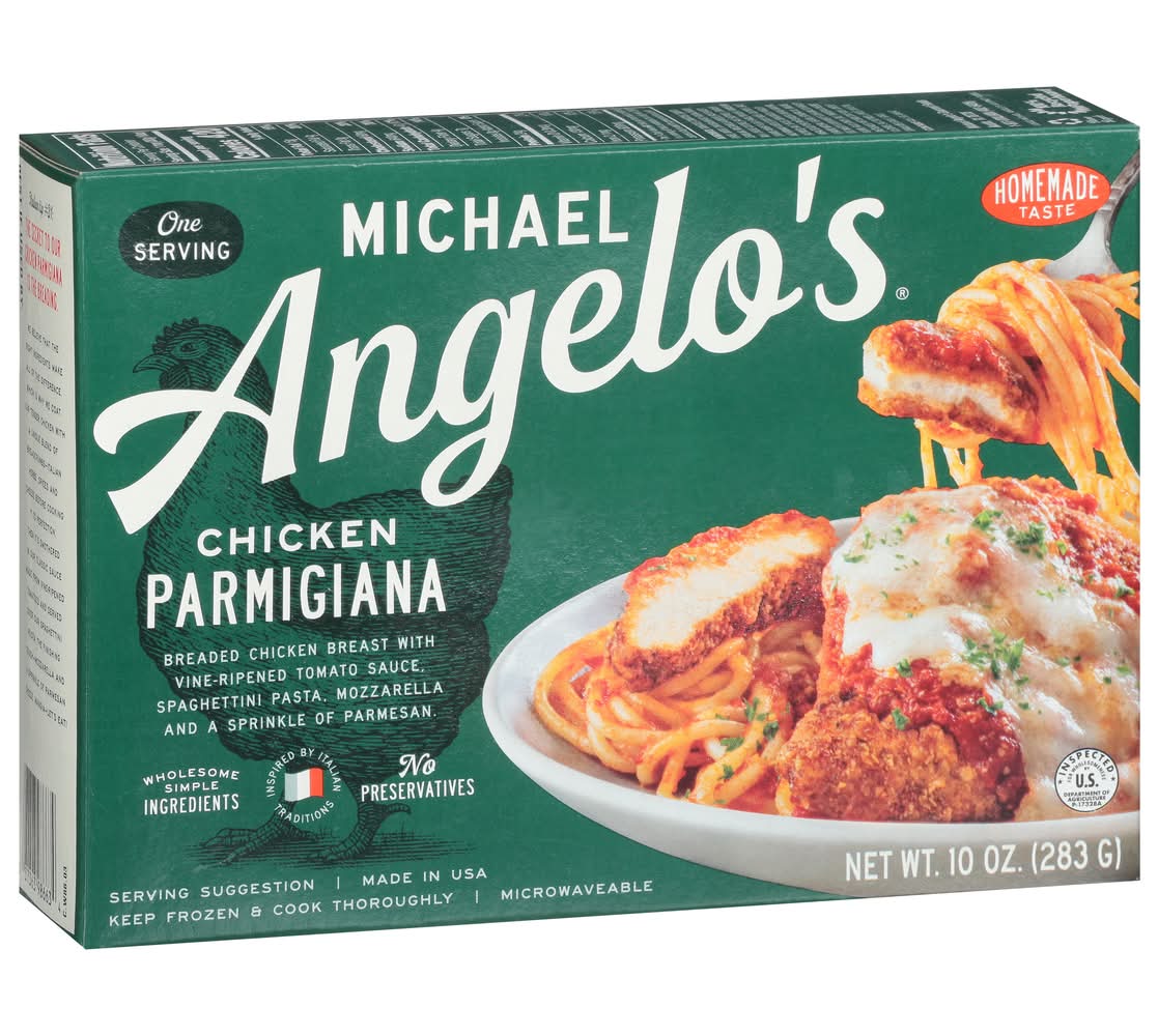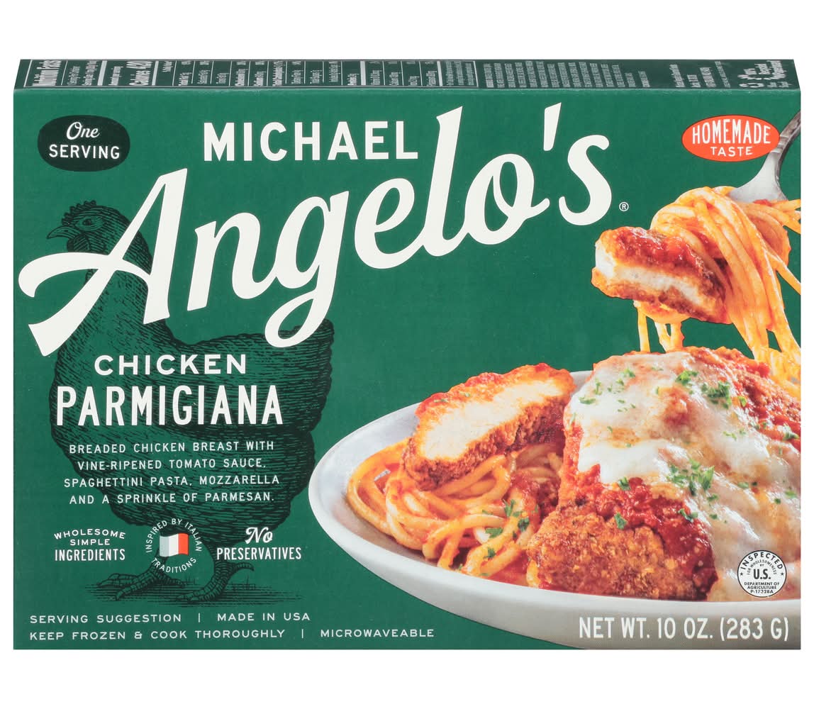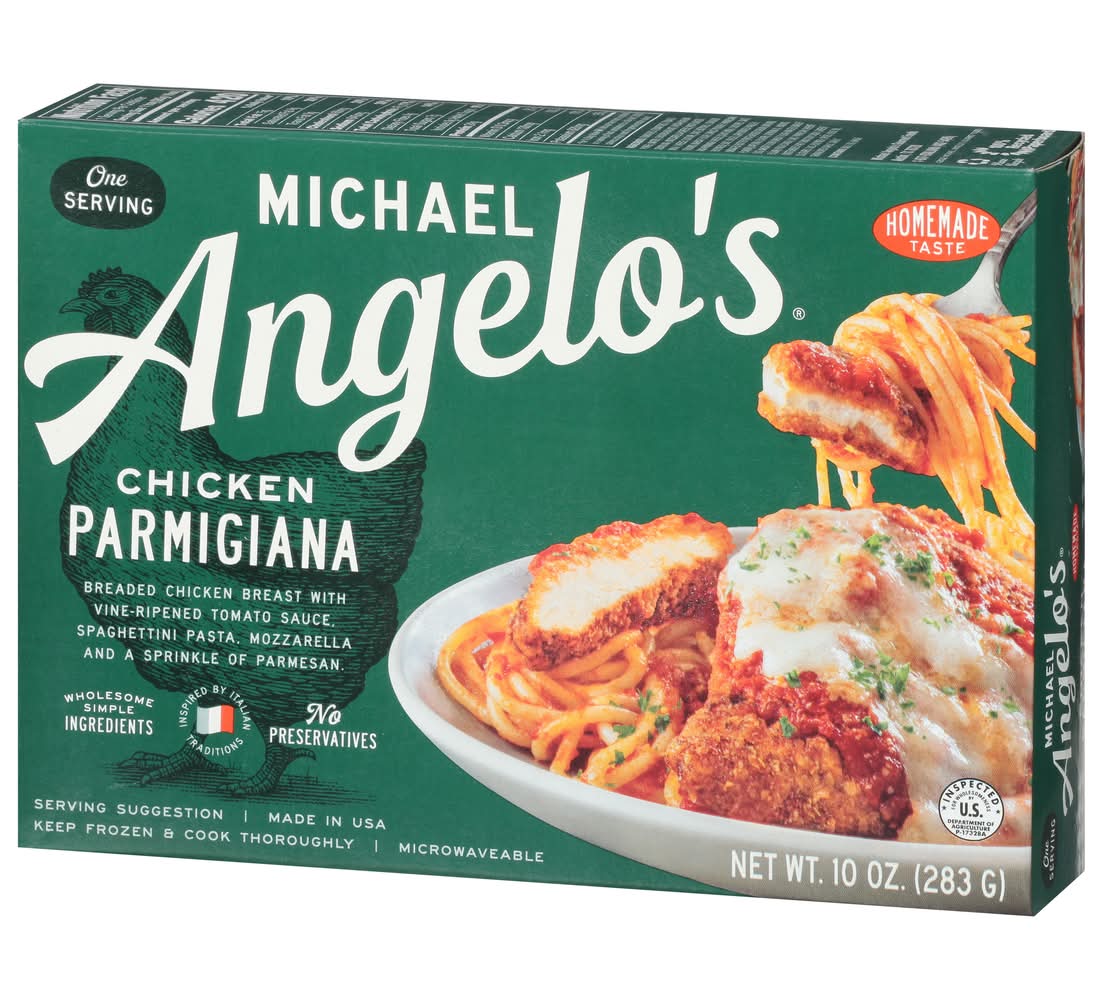 Parmigiana, Chicken, One Serving • Size: 10 OZ • Michael Angelos, Austin, TX 78728 • Packaging: Reusable