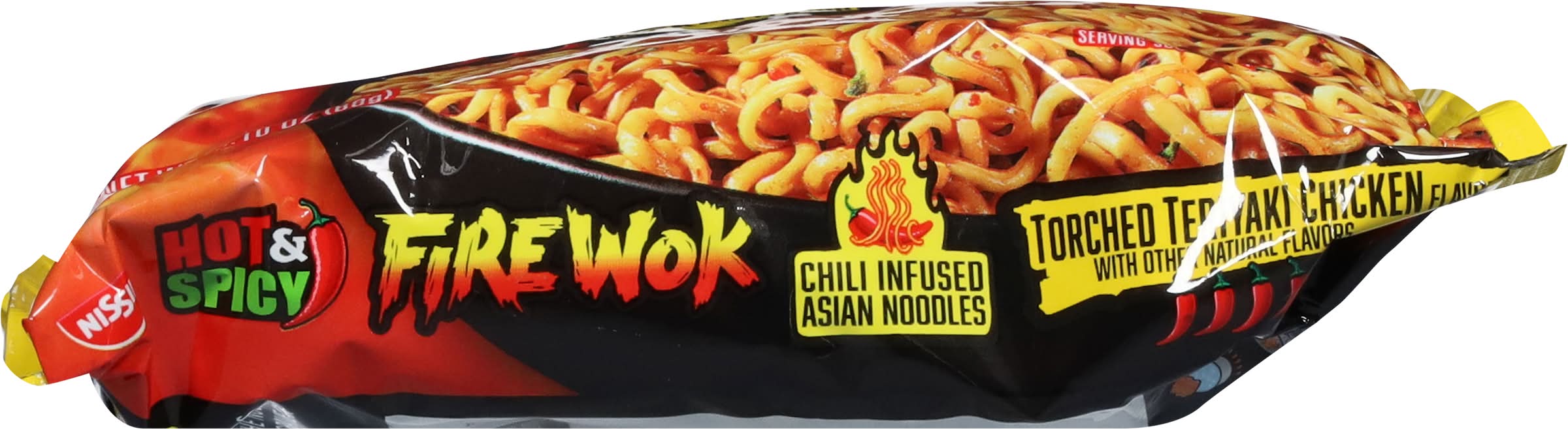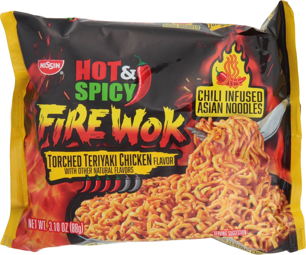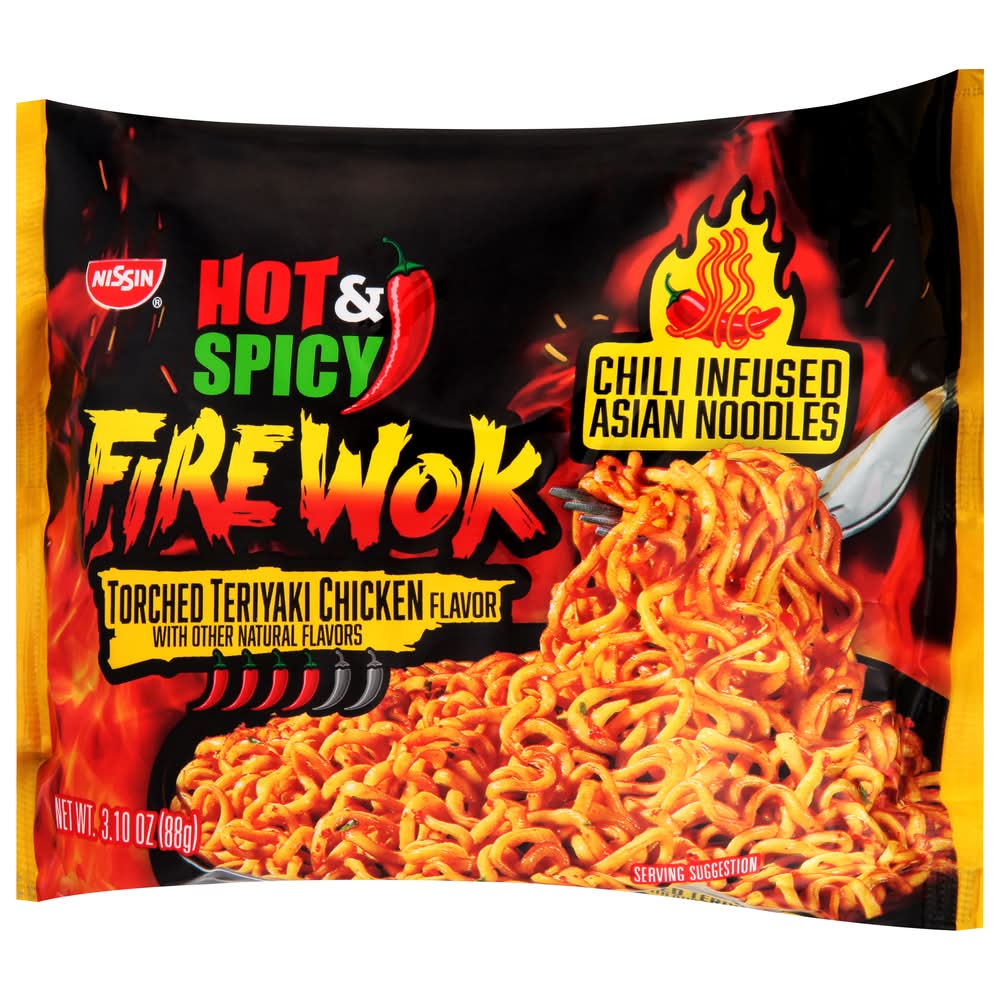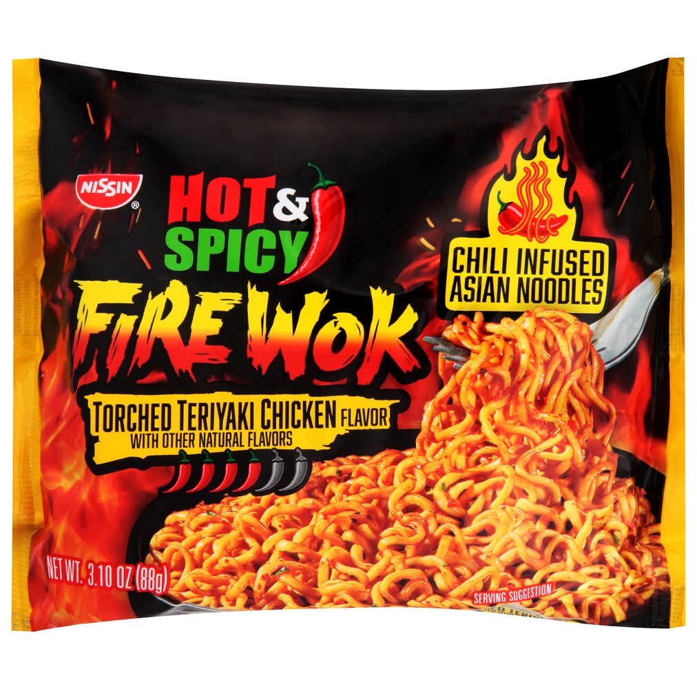 Nissin Hot & Spicy Fire Wok Chili Infused Asian Noodles, Torched Teriyaki Chicken (3.1 oz)