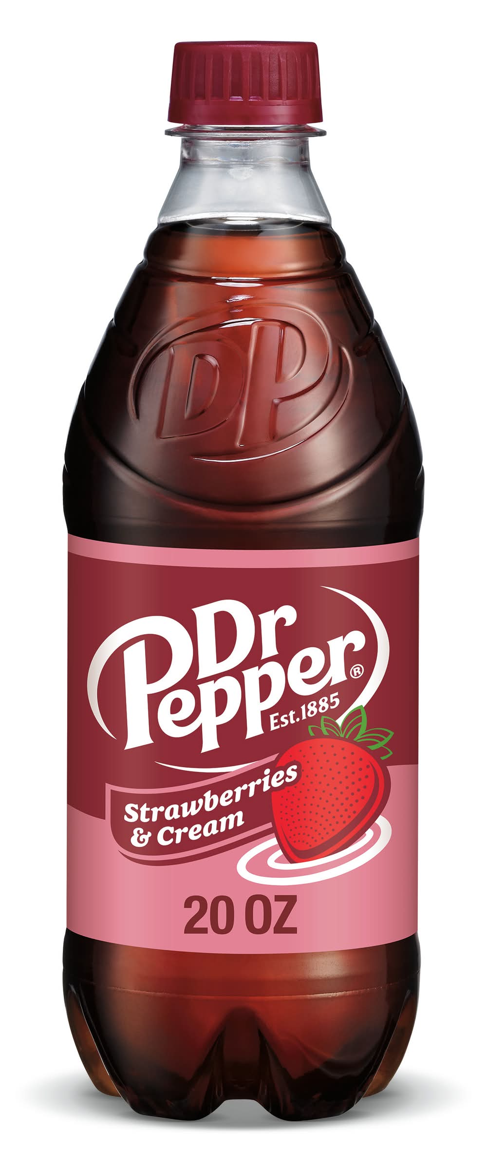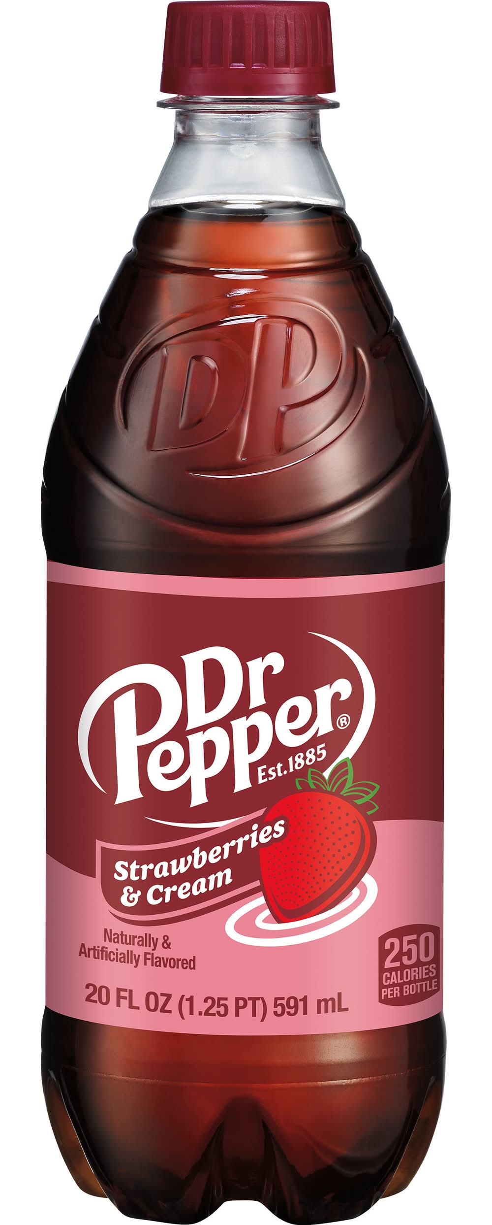Dr Pepper Strawberries and Cream Soda Bottle • Flavor: Strawberries-cream • Size: 20 OZ • Packaging: Reusable
