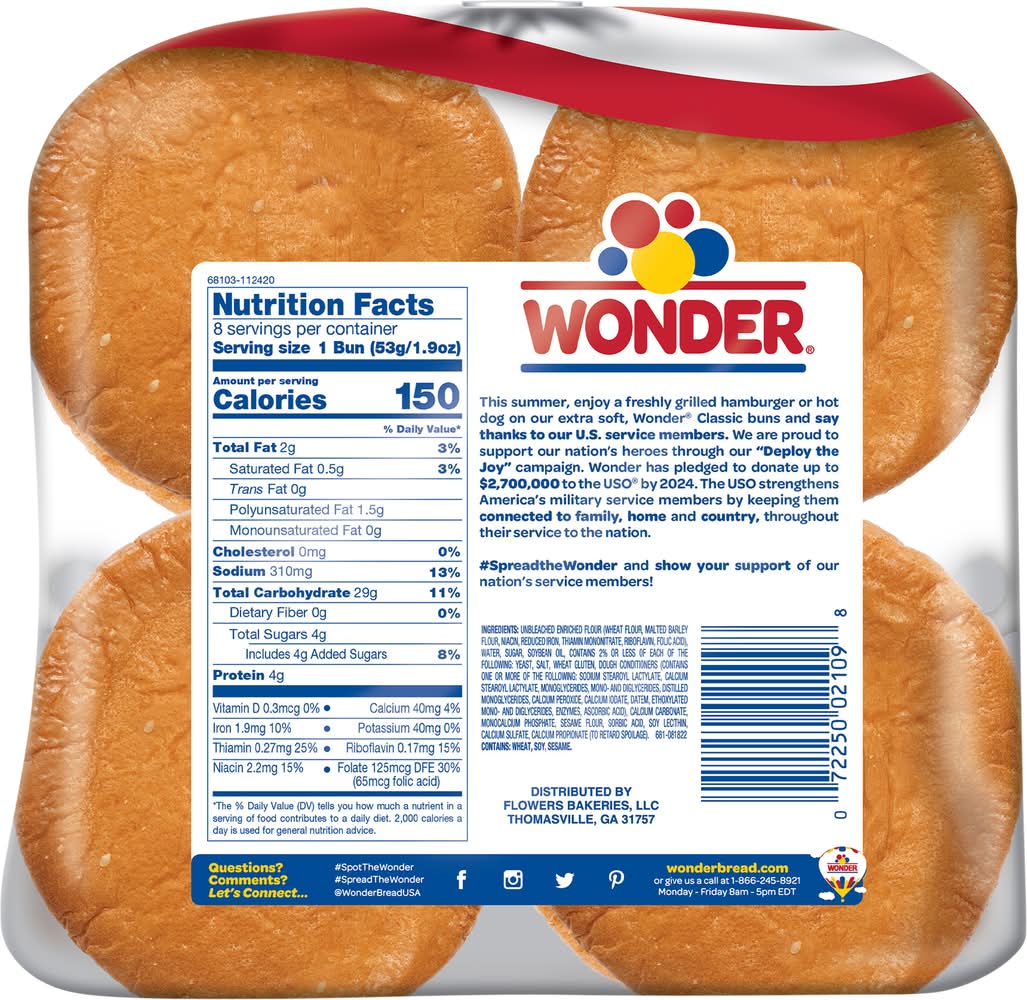 Wonder Classic White Bread Hamburger Buns (15 oz, 8 ct)