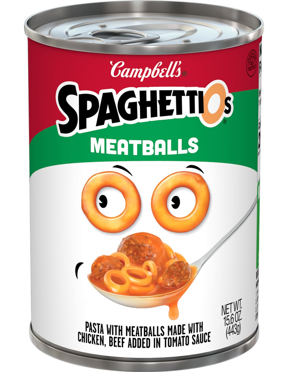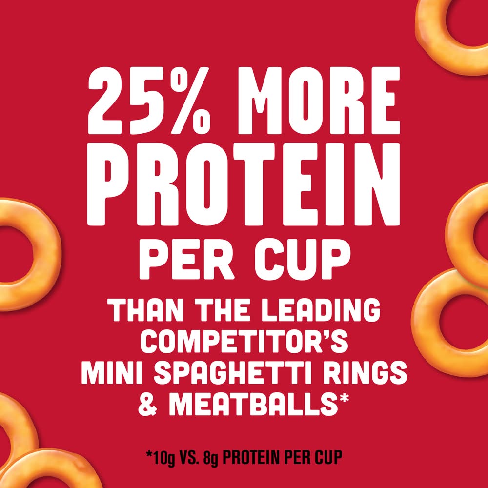 SpaghettiOs Canned Pasta with Meatballs is the joyfully uncomplicated dish the whole family will enjoy. With its signature O-shaped pasta in sweet, saucy nostalgia, every spoonful of these pasta rings deliver that comforting classic flavor kids love and parents remember. It's fun, mess-free, and designed for families to actually enjoy together. Whether you're serving it up as part of a quick lunch, or an afternoon snack, SpaghettiOs is there to create moments of playful delight while keeping things convenient. Not only is SpaghettiOs delicious, but it also has sneaky goodness into every bite. Each cup includes 20% of your daily vegetables(1 cup of canned pasta = 1/2 cup vegetables) in every serving. And with 10 grams of protein per cup, it's an option parents can feel good about serving. The iconic sweet sauce floods every bite with flavor, making it a canned pantry food staple kids can enjoy. Heat it up in minutes, or dive right in and enjoy - you might even steal a spoonful yourself. SpaghettiOs canned pasta is the comforting classic that brings families together over the table in moments of light-hearted joy. A bowl filled with O-shaped fun and endless nostalgia means every meal is a little bit mischievous, a little bit cozy, and entirely delicious. So grab a spoon and rediscover what mealtime is all about with SpaghettiOs. • Size: 14.2 OZ • Campbell Soup Company, Camden,NJ,08103-1701 • Packaging: Reusable