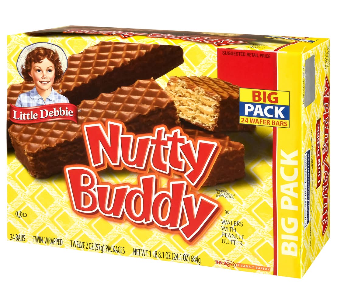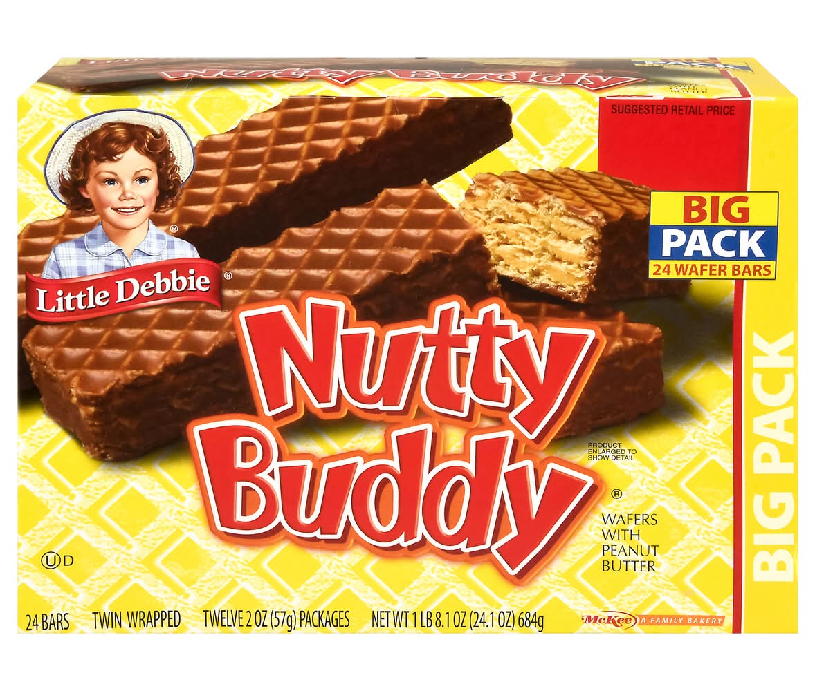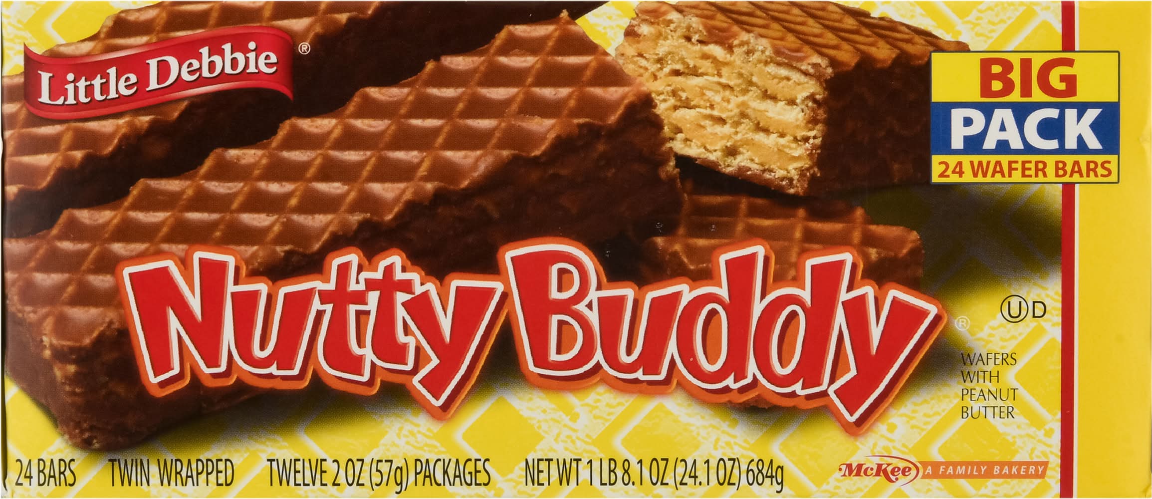 Little Debbie Big pack Nutty Buddy Twin Wafer Bars, Peanut Butter (12 x 2 oz)