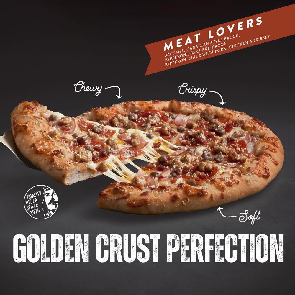 Ingredients: Wheat Flour, Water, Cheese Blend (Low Moisture Part Skim Mozzarella and Parmesan Cheeses [Part Skim Milk, Cheese Cultures, Salt, Enzymes], Cheddar Cheese (Milk, Cheese Cultures, Salt, Enzymes, Annatto (Color)), Meat Blend (Sausage [Pork, Water, Spices, Salt, Dextrose, Garlic Powder, Paprika), Cooked Beef Patty Crumbles [Ground Beef (Beef, Seasoning [Salt, Ground Black Pepper, Whole Anise), Water, Textured Vegetable Protein (Soy Flour, Caramel Color), Soy Protein Concentrate], Bacon with Smoke Flavoring Added [Cured with Water, Salt, Sugar, Smoke Flavoring, Sodium Phosphates, Sodium Erythorbate, Sodium Nitrite]), Tomato Paste, Canadian Style Bacon Water Added Made with Pork Sirloi (Cured with Water, Contains 2% or Less of: Salt, Sodium Lactate, Sugar, Sodium Phosphates, Sodium Diacetate, Sodium Ascorbate, Sodium Nitrite), Pepperoni Made with Pork, Chicken and Beef (Pork, Mechanically Separated Chicken, Beef, Salt, Contains 2% or Less of: Dextrose, Lactic Acid Starter Culture, Flavoring, Sodium Nitrite, BHA, BHT, Citric Acid, May Also Contain: Spices, Water, Paprika, Oleoresin of Paprika, Spice Extractives, Smoke Flavoring, Sodium Ascorbate, Ascorbic Acid, Beef Stock), Contains 2% or Less of: Yeast, Palm Oil, Brown Rice Flour, Sugar, Salt, Baking Powder (Sodium Acid Pyrophosphate, Baking Soda, Monocalcium Phosphate), Vegetable Oil (Soybean and/or Canola Oil), Hydrogenated Soybean Oil, Malted Barley Flour, Dough Conditioner (Enzymes, Contains One or More of the Following: DATEM, Calcium Carbonate, Wheat Gluten, Guar Gum, Ascorbic Acid), Modified Food Starch, Dried Garlic, Spice, Maltodextrin, Dextrose, Hydrolyzed Soy and Corn Protein, Paprika, Dried Onion, Soy Lecithin, Natural Flavor, Niacin, Reduced Iron, Thiamine Mononitrate, Wheat Starch, Riboflavin, Folic Acid, Ferrous Sulfate. Contains: Milk, Wheat, Soy