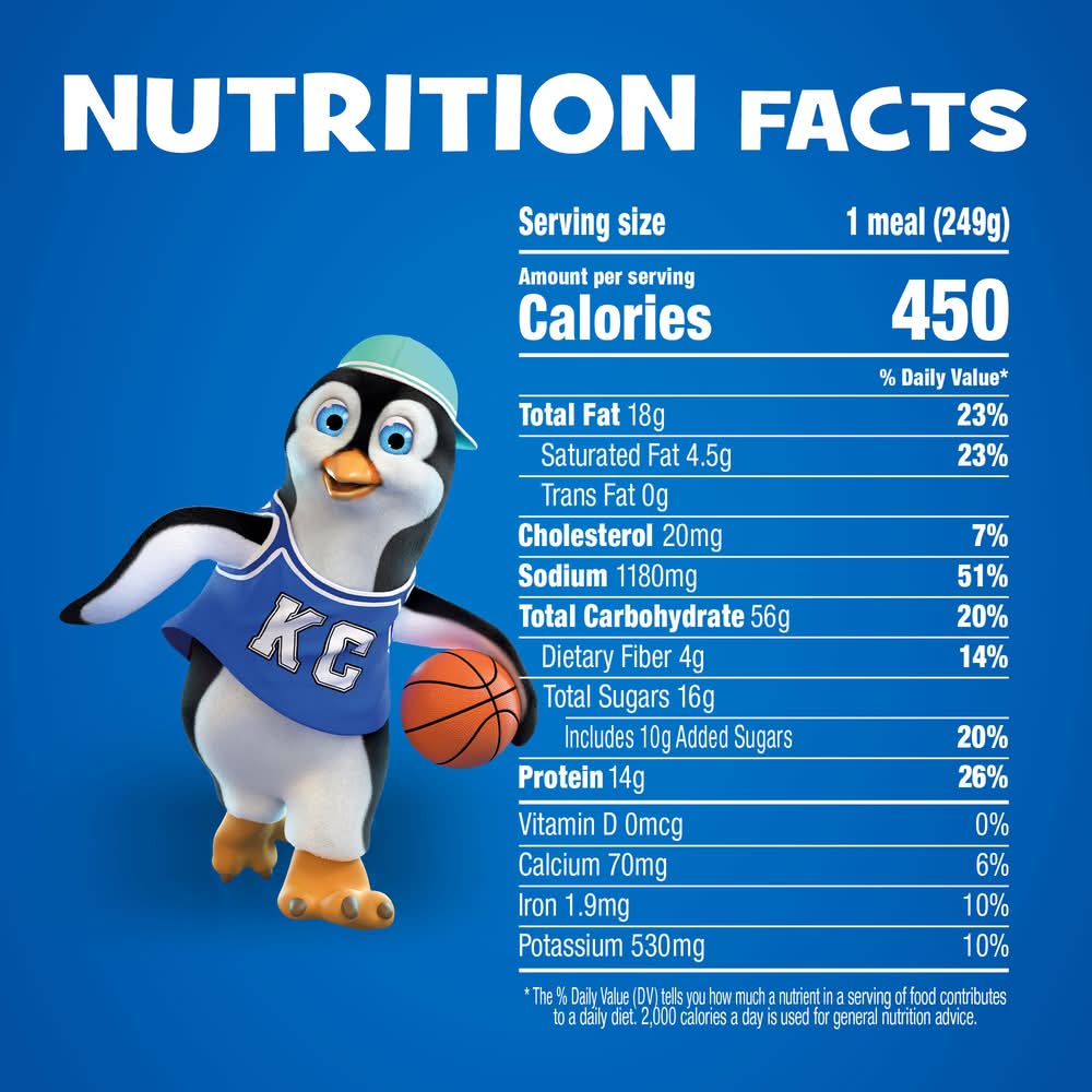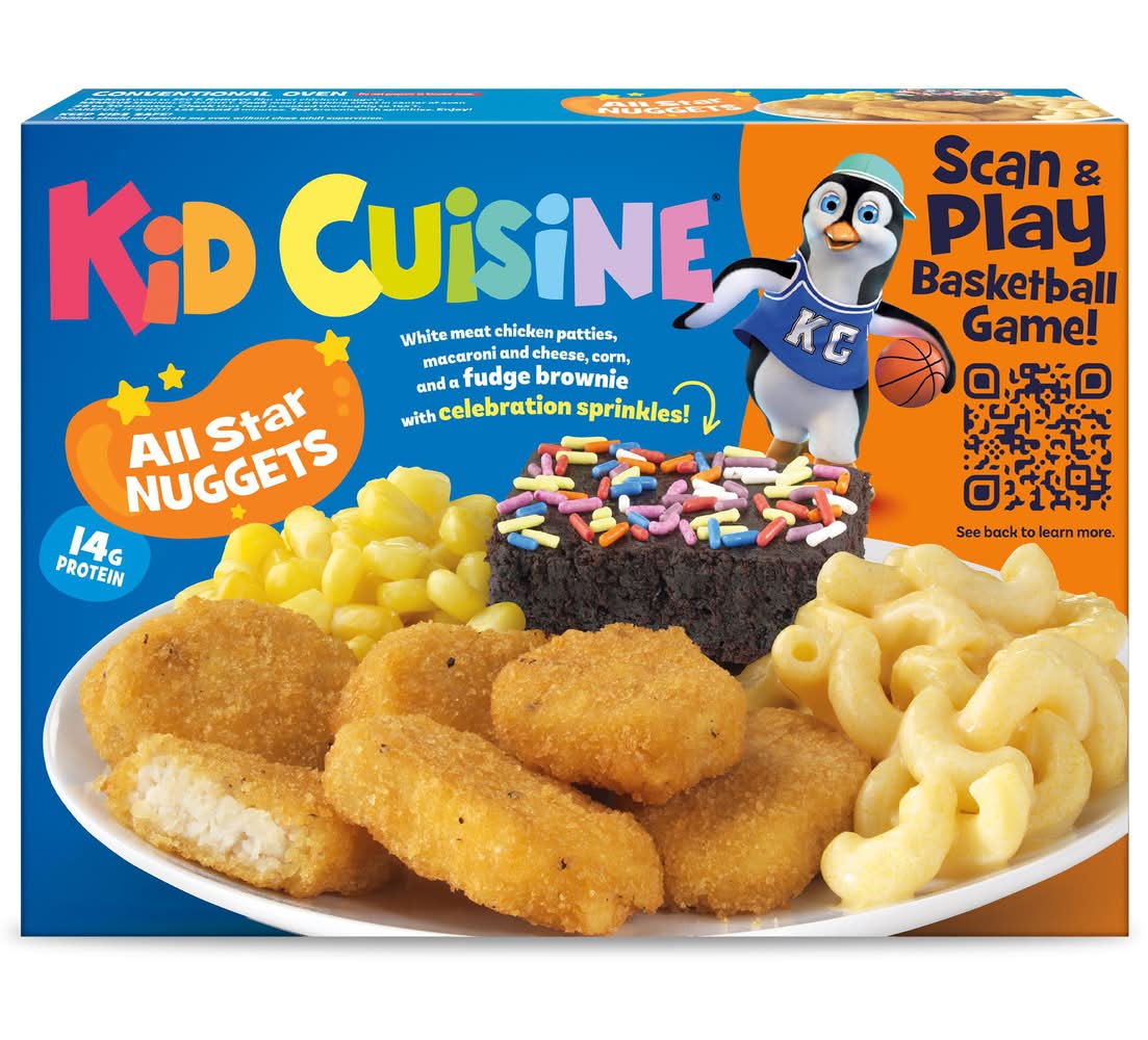 Kid Cuisine All Star Nuggets are deliciously fun frozen meals just for kids! Your kiddos will love digging into tasty white meat chicken patties, macaroni and cheese, corn and a fudge brownie with celebration sprinkles. This microwave meal is easy to prepare for quick kids meals in just a few simple steps. Keep your freezer stocked with Kid Cuisine for exciting weekend lunches and weeknight dinners that your little ones will devour, even the picky eaters. Plus, they come with an Augmented Reality sports game you can scan on pack to play. • Size: 8.8 OZ • Conagra Brands, PO Box 3534,Chicago,IL,60654.