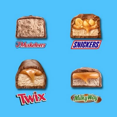 Enjoy this assortment of classic milk chocolate bars with BIG taste. Minis variety bag is perfect for all occasions. Ideal for party favors, movie nights, candy bowls, and piñatas, individually wrapped mini candy bars ensure lasting freshness for all of life's sweet moments. Pack them in lunches for a sweet surprise or take this party size bag on the road for your next outdoor adventure. Don't stop at just unwrapping and enjoying these candies, add them to your favorite dessert and baking recipes. These chocolates are perfect for any momentous occasion. Celebrate graduations, baby showers, wedding reception, even Mother's Day with these mini milk chocolate bars. No matter the celebration or occasion, keep this milk chocolate candy bar assortment on hand. With Snickers, Twix, Milky way and 3 Musketeers. Size: 13.72 OZ