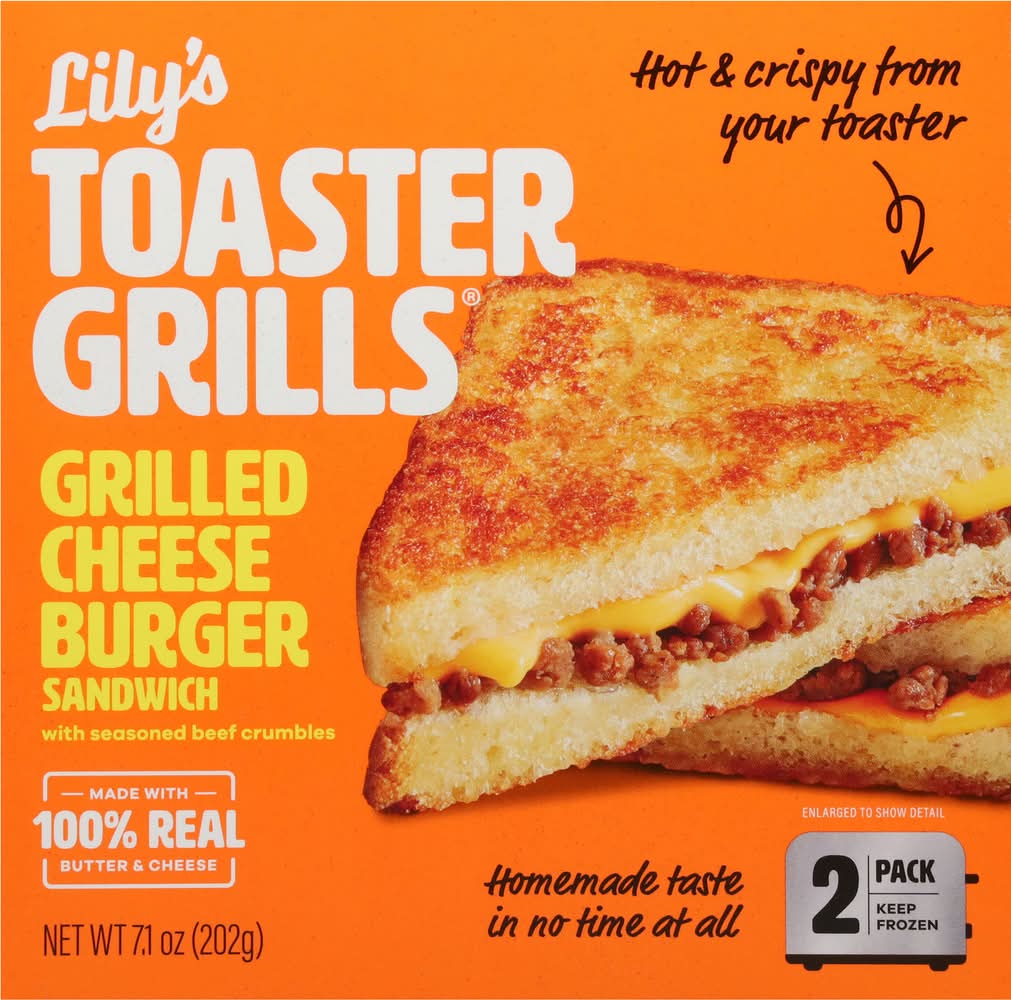 Sandwich, Grilled Cheese Burger • Size: 7.1 OZ • Lily's Toaster Grills Llc, Denver, CO, 80216 • Packaging: Reusable