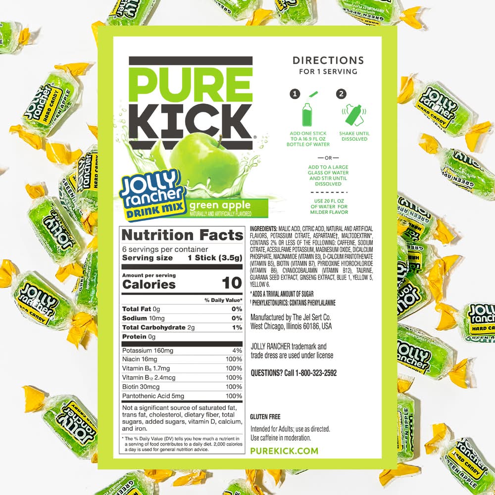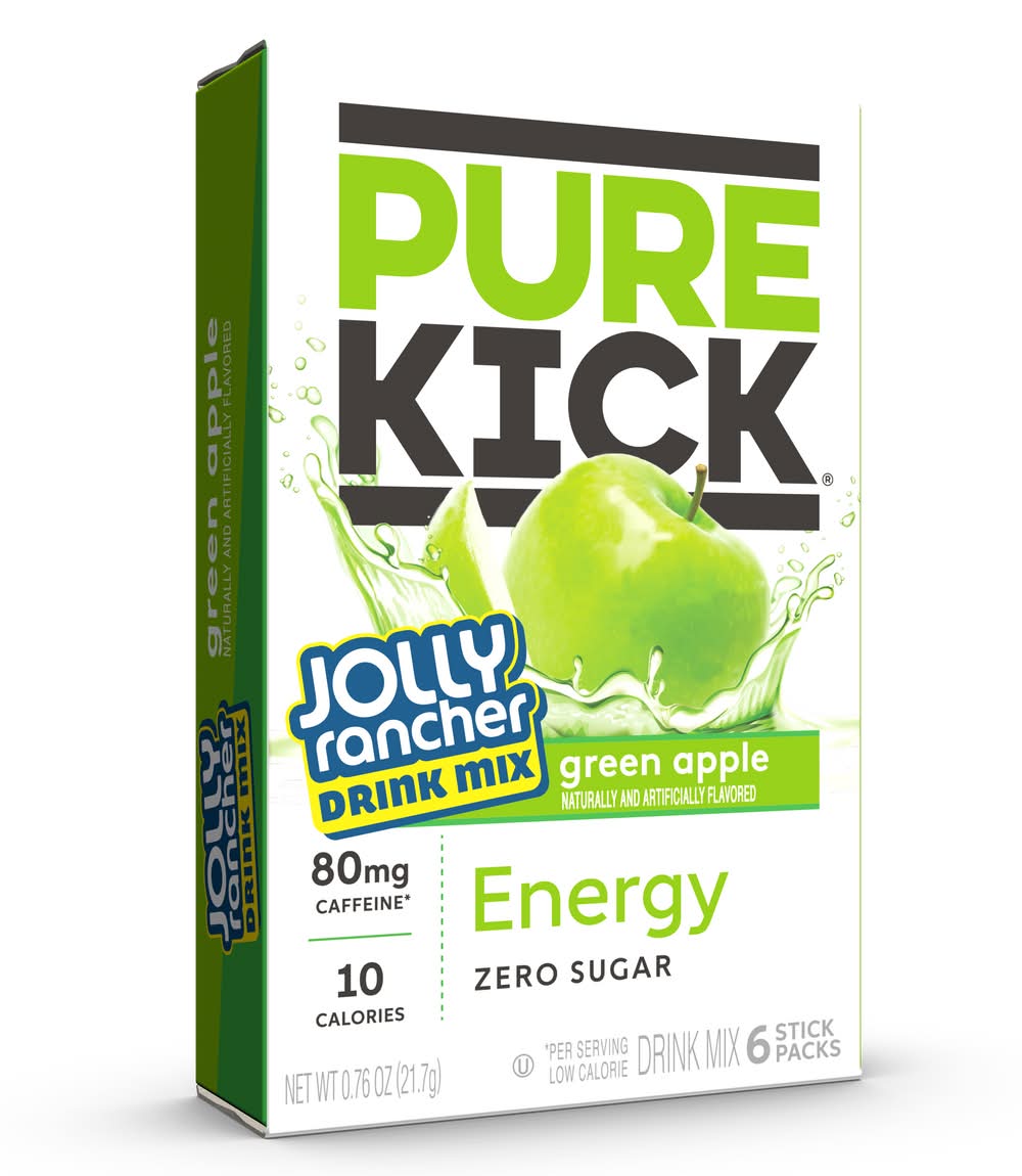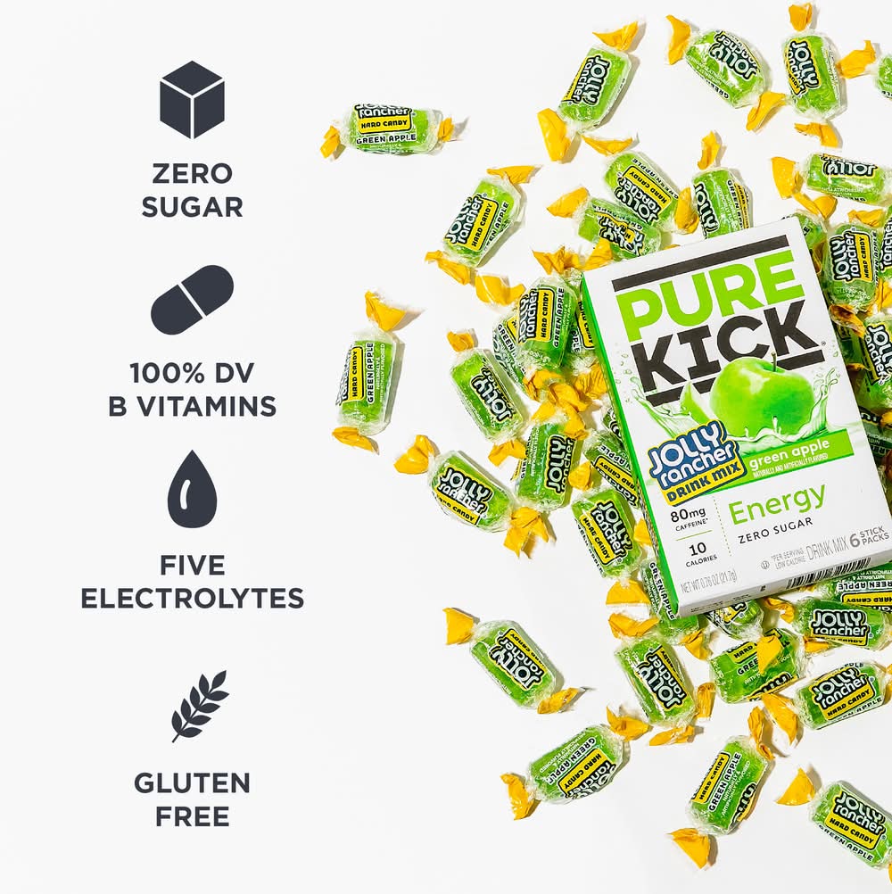 Pure Kick Jolly Rancher Zero Sugar Energy Drink Mix, Green Apple (0.76 oz, 6 ct)