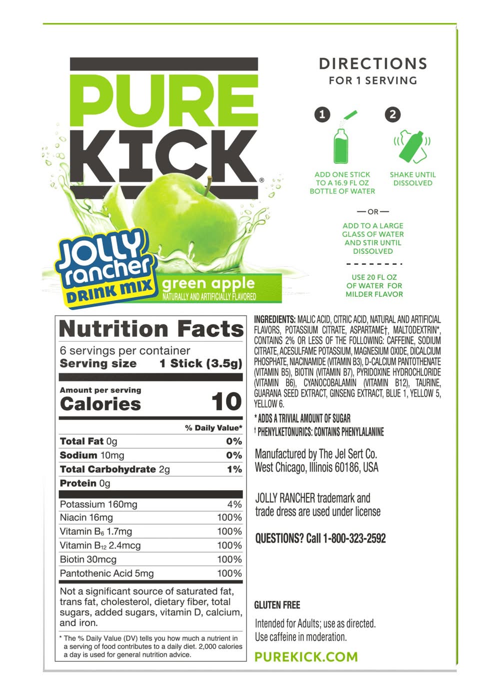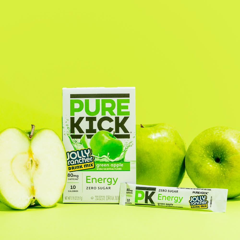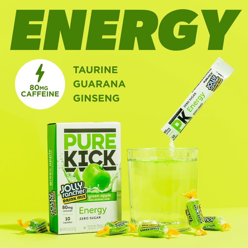 Pure Kick Jolly Rancher Zero Sugar Energy Drink Mix, Green Apple (0.76 oz, 6 ct)