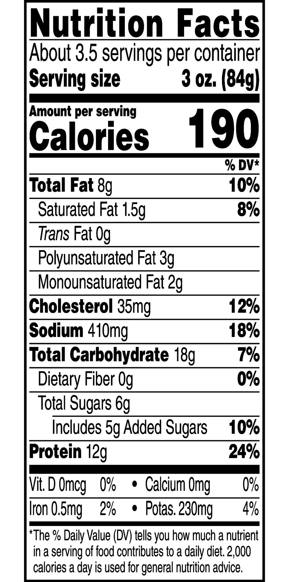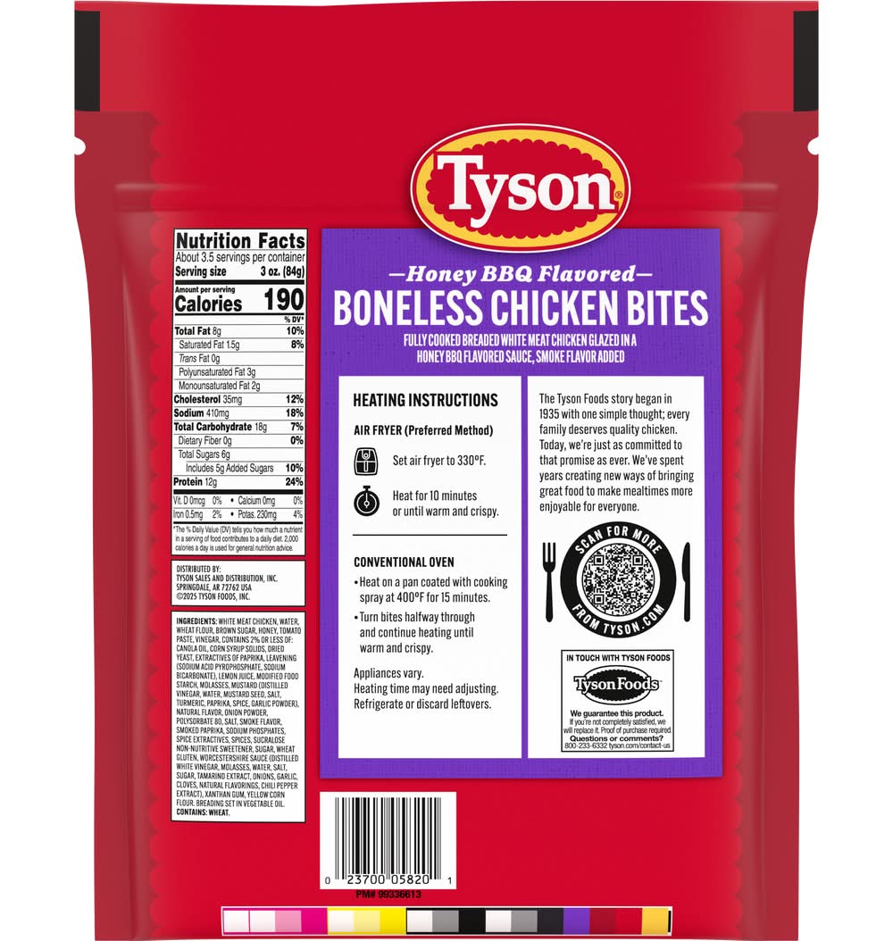 Honey BBQ Flavored Boneless Chicken Bites • Flavor: Honey bbq • Size: 11 OZ