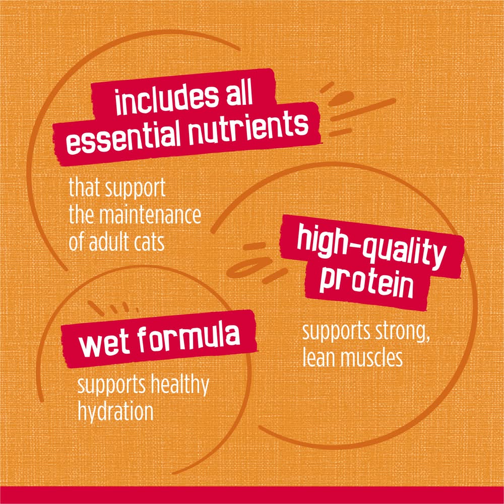 Made with shredded chunks of real chicken, this mouthwatering cat food recipe offers a rich taste she's sure to meow about with no artificial colors or preservatives. Savory juices add to the deliciousness of every bite, and the tender, soft cat food texture promises to please her palate. With a tempting aroma, this moist cat food piques her curiosity every time you fill her dish. Give her the Friskies cat food flavors she craves and take comfort knowing that each serving helps deliver the complete and balanced nutrition she needs to maintain her adventurous lifestyle. • Size: 5.5 OZ • Packaging: Reusable