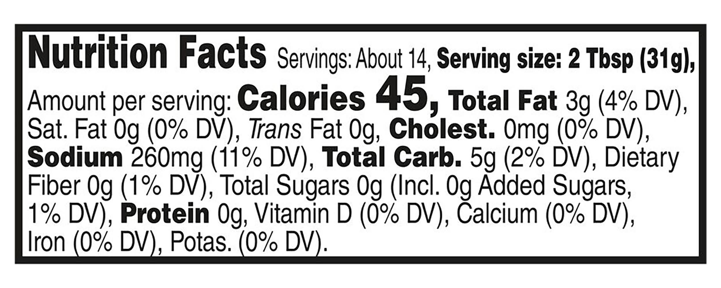 Ingredients: Water, Canola and/or Sunflower Oil, Maltodextrin (Made from Corn), Modified Food Starch, Natural and Artificial Flavors, and Less than 2% of Salt, Sugar, Yeast Extract, Xanthan Gum, Whey Protein Concentrate, DATEM, Mono- & Diglycerides, Onion Powder, Glucono Delta Lactone, Jalapeno Pepper, Spices, Garlic Powder, Beta Carotene (Color), Phosphoric Acid, and Acetic Acid Contains: Milk, Corn