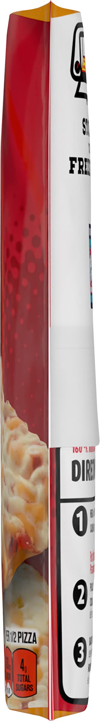 Directions for use: For food safety and quality, follow baking directions; Do not microwave. Cook thoroughly to at least 160 degree F keep frozen until ready to bake. Remove pizza from wrapper before baking. Refrigerate leftovers. Directions: Oven: 1. Heat oven to 450 degree F. For crisper crust. 2. Place pizza directly on middle oven rack. 3. Bake 10 to 12 minutes or until cheese in center is melted. For softer crust. Place pizza on baking sheet. Bake 13 to 15 minutes or until cheese in center is melted. Toaster Oven: Do not leave toaster oven unattended while cooking pizza. 1. Heat oven to 450 degree F. 2. Place pizza on a toaster oven tray. Do not bake directly on toaster oven rack. 3. Bake 14 to 15 minutes or until cheese on center melted. Keep frozen. Storage recommendation: Keep frozen.