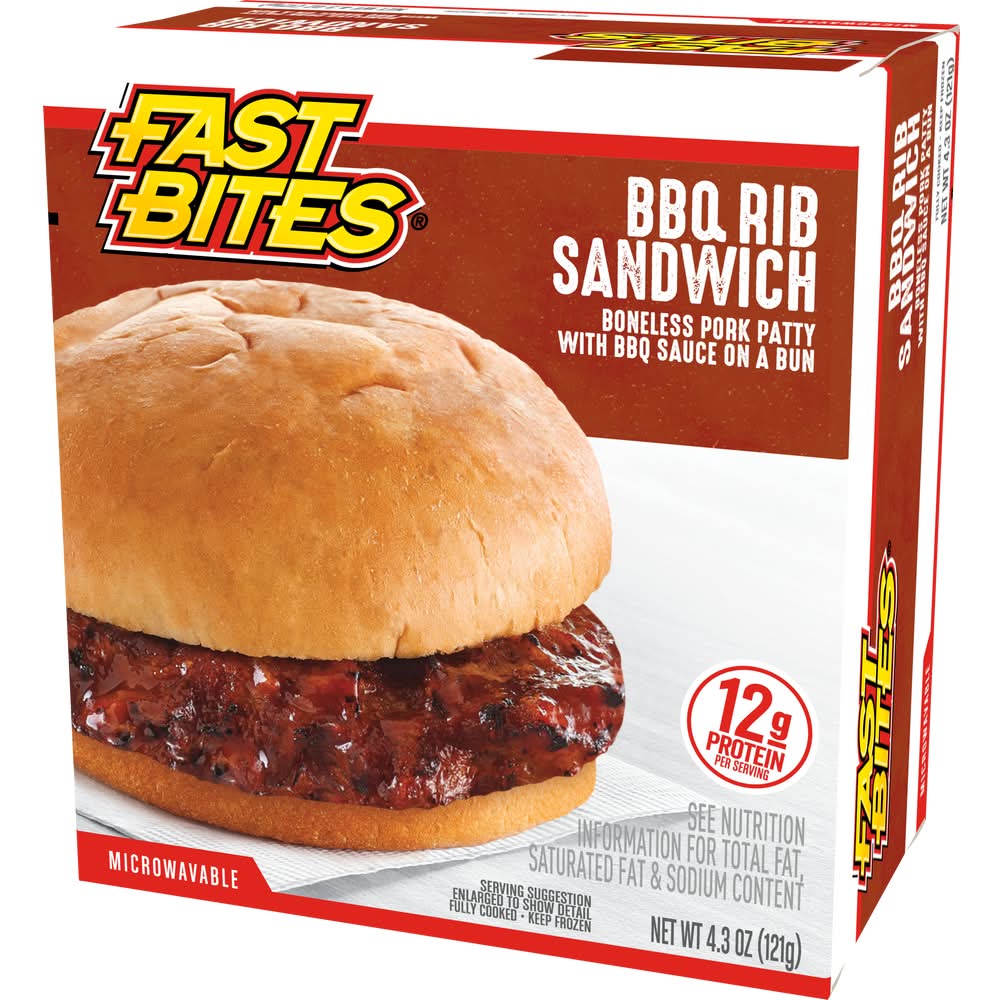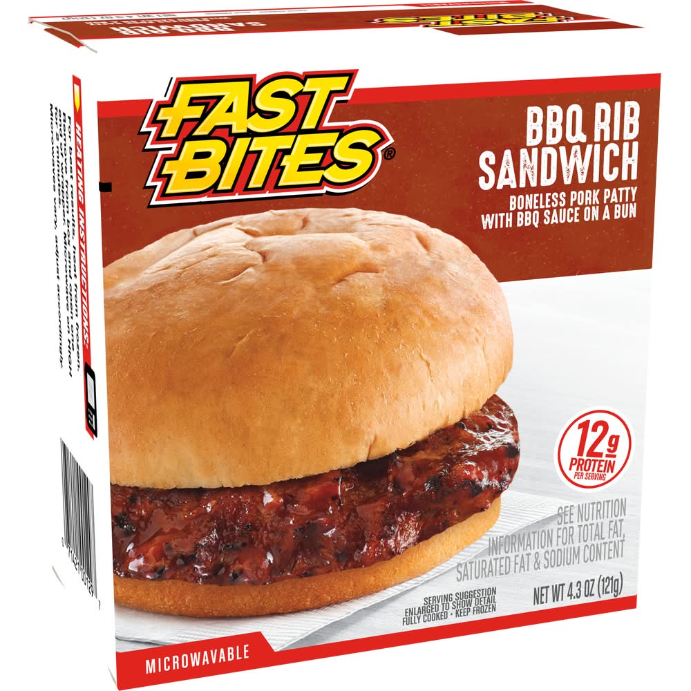 Fast Bites Fully Cooked Bbq Rib Sandwich Boneless Pork Patty (4.3 oz)
