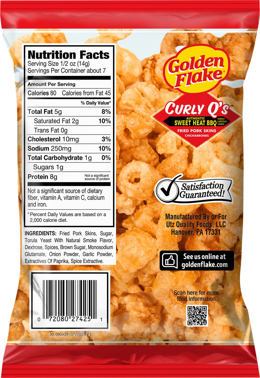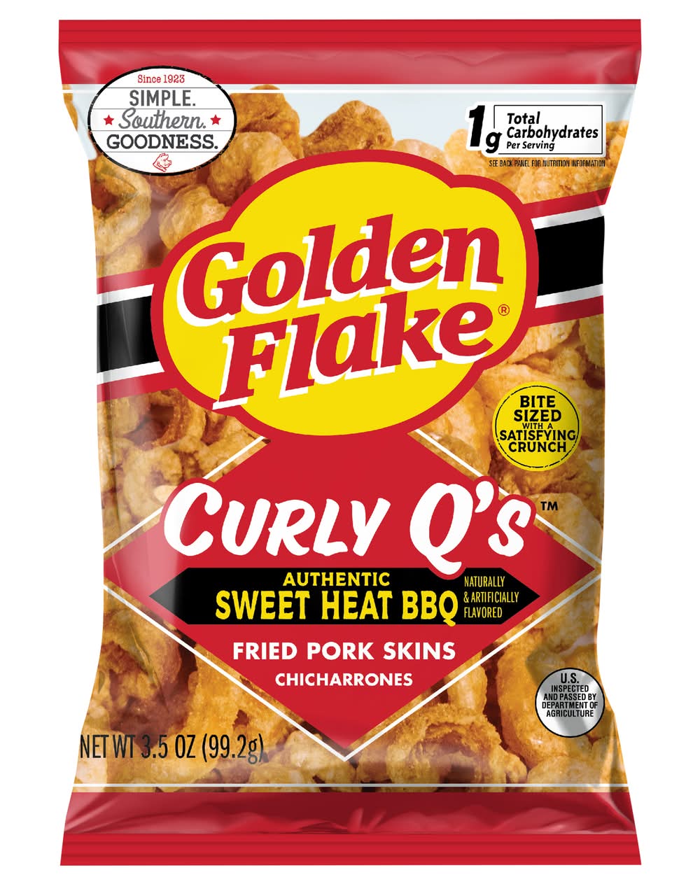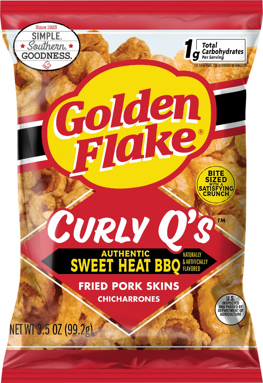 Golden Flake Curly Q’s Fried Pork Skins Chicharrones, Sweet Heat Bbq (3.5 oz)