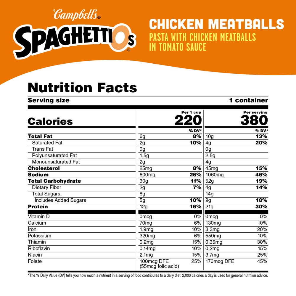 Campbell's Spaghettios Pasta With Chicken Meatballs in Tomato Sauce (15.6 oz)