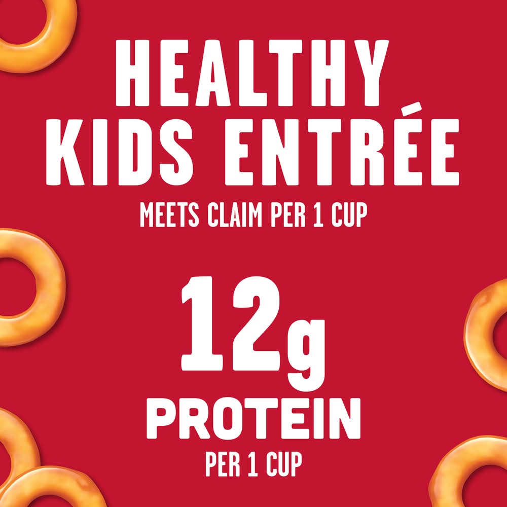 SpaghettiOs Canned Pasta with Chicken Meatballs is the joyfully uncomplicated dish the whole family will enjoy. With its signature O-shaped pasta in sweet, saucy nostalgia, every spoonful of these pasta rings deliver that comforting classic flavor kids love and parents remember. It's fun, mess-free, and designed for families to actually enjoy together. Whether you're serving it up as part of a quick lunch, or an afternoon snack, SpaghettiOs is there to create moments of playful delight while keeping things convenient. Not only is SpaghettiOs delicious, but it also has sneaky goodness into every bite. Each cup includes 20% of your daily vegetables* *(1 cup of canned pasta = 1/2 cup vegetables) in every serving. And with 12 grams of protein per cup, it's an option parents can feel good about serving. The iconic sweet sauce floods every bite with flavor, making it a canned pantry food staple kids can enjoy. Heat it up in minutes, or dive right in and enjoy - you might even steal a spoonful yourself. SpaghettiOs canned pasta is the comforting classic that brings families together over the table in moments of light-hearted joy. A bowl filled with O-shaped fun and endless nostalgia means every meal is a little bit mischievous, a little bit cozy, and entirely delicious. So grab a spoon and rediscover what mealtime is all about with SpaghettiOs. • Size: 15.6 OZ • Campbell Soup Company, Camden,NJ,USA • Packaging: Reusable