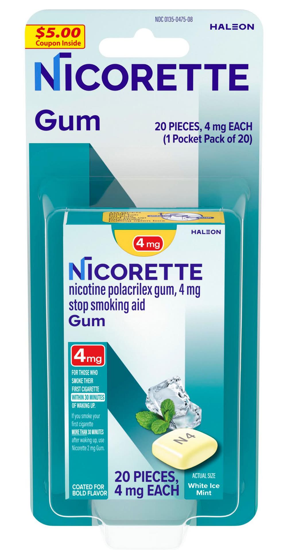 Nicorette Polacrilex Stop Smoking Aid Gum 4 mg, White Ice Mint (20 ct)