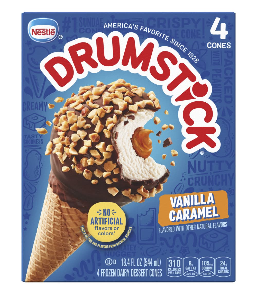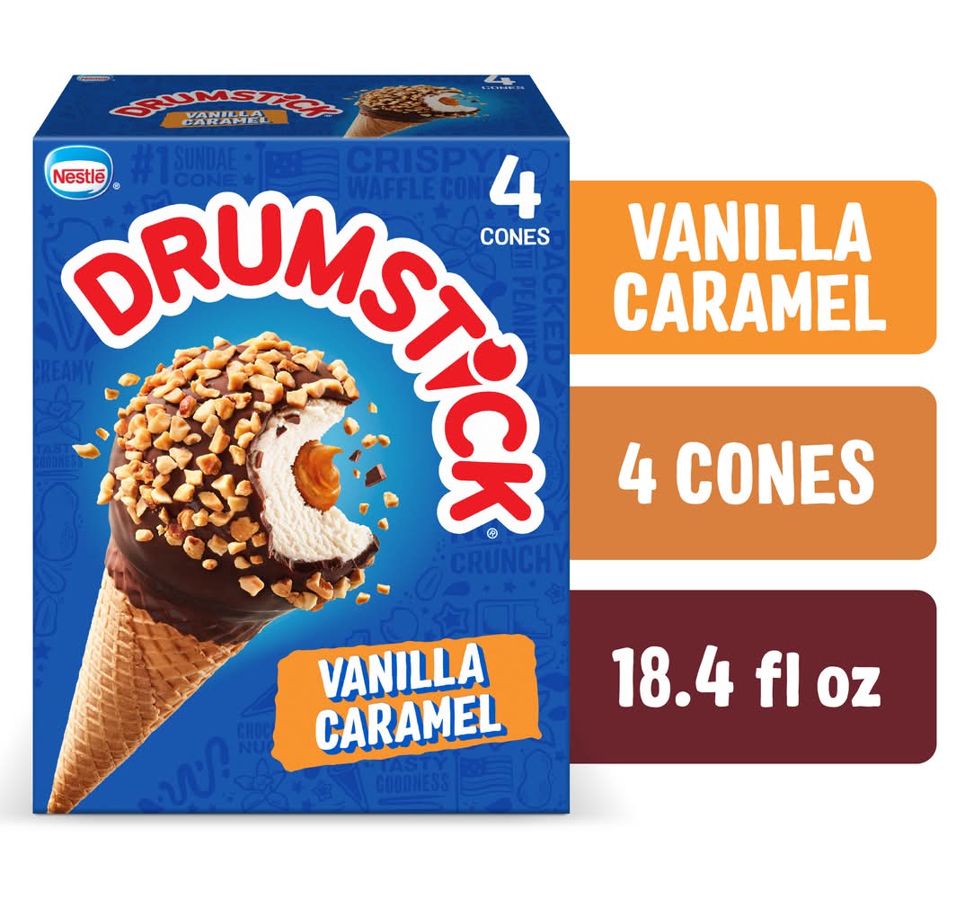 Drumstick Sundae Dessert Cones, Vanilla Caramel (18.4 fl oz, 4 ct)
